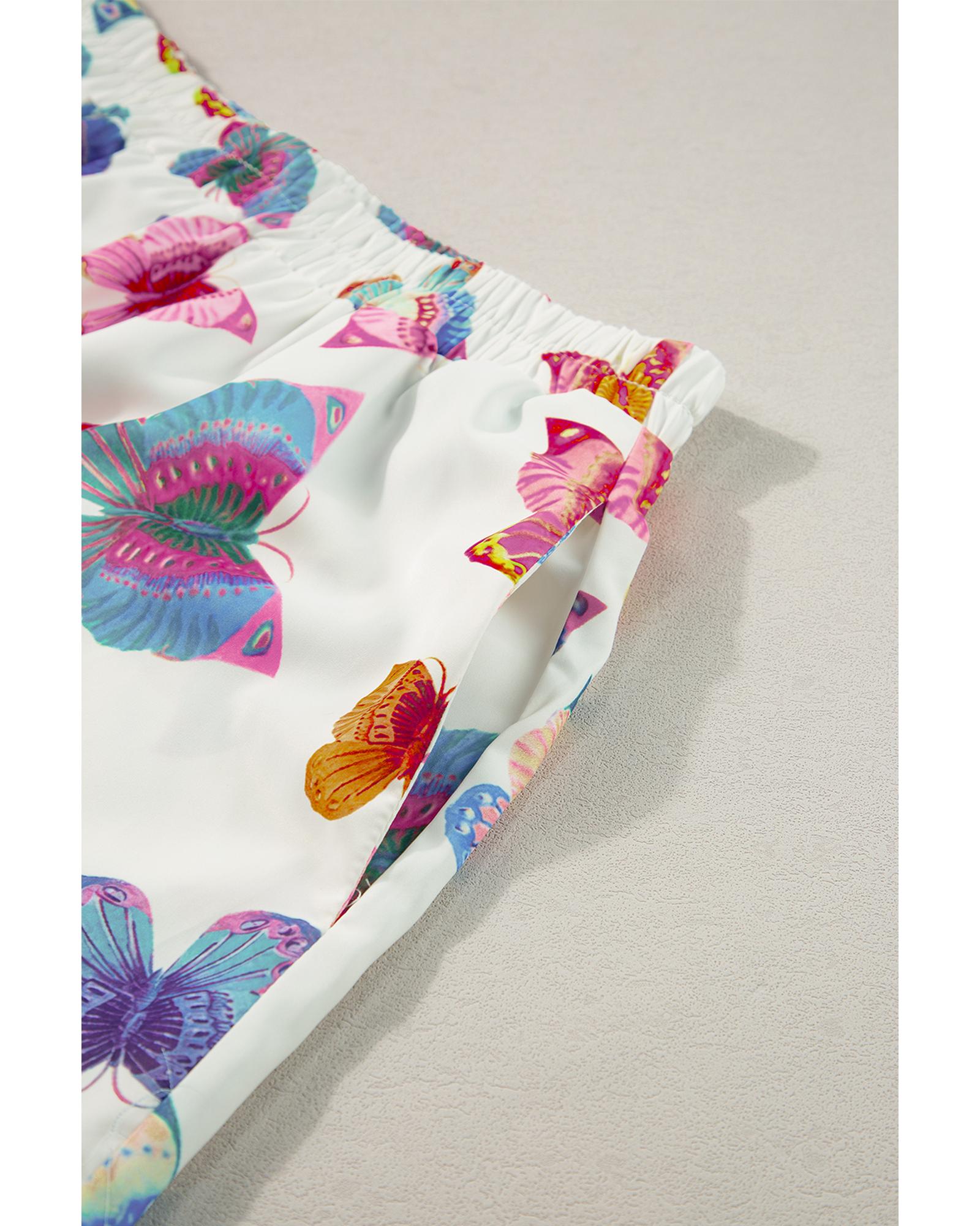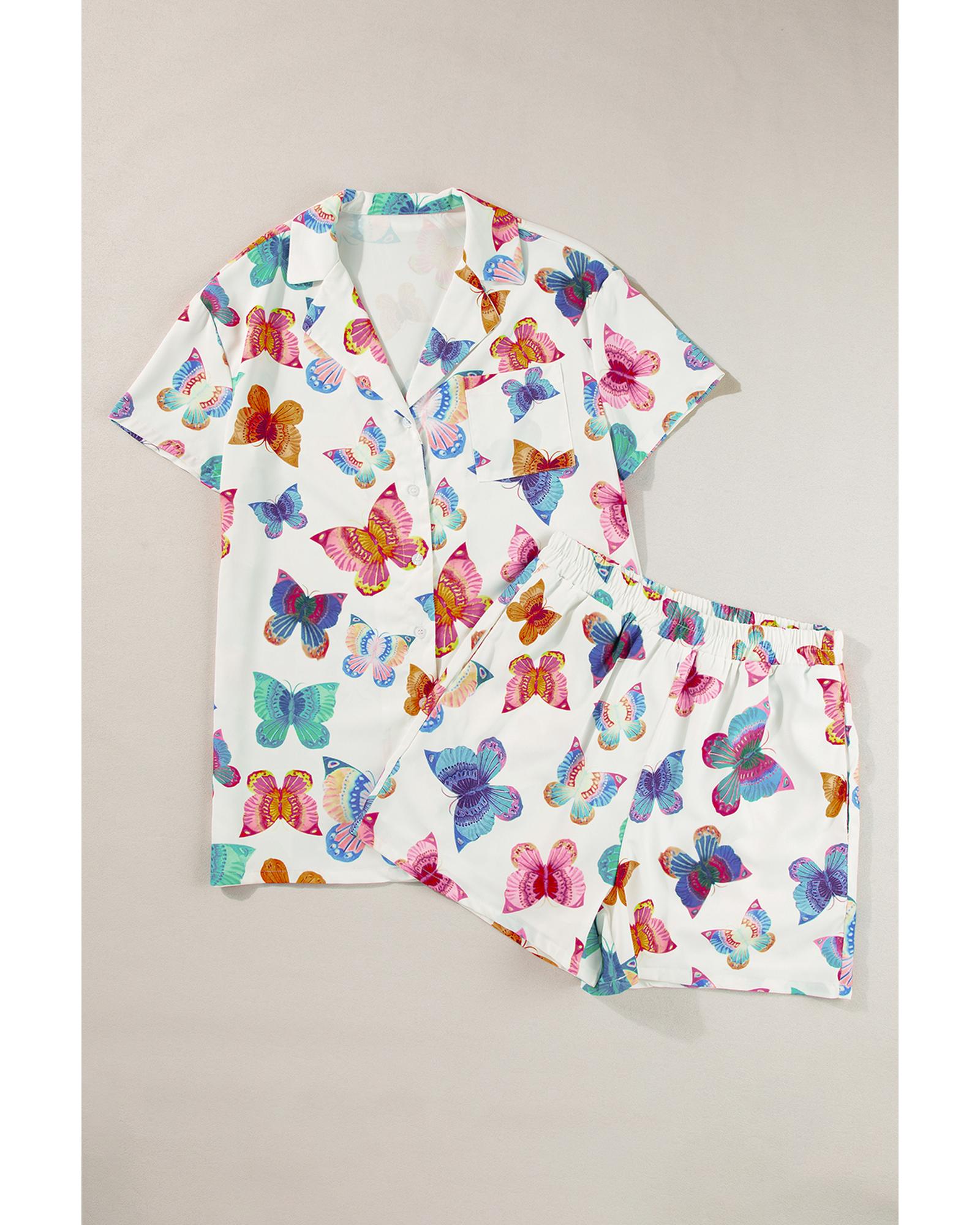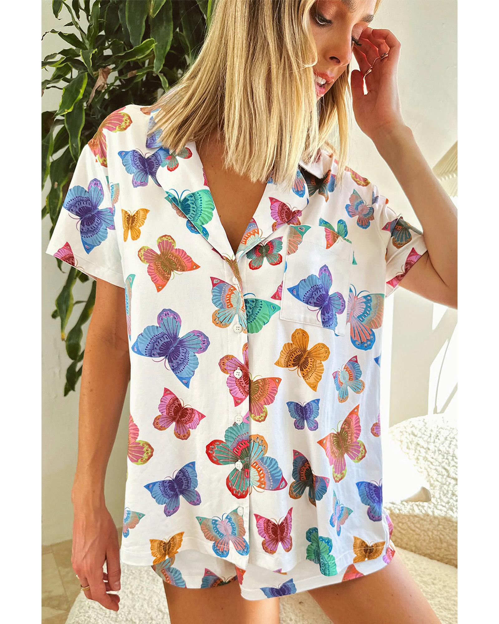 Multicolour Butterfly Pattern Short Sleeve Shirt Pajamas Set – XL