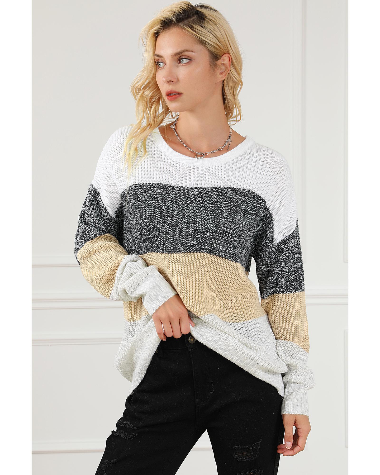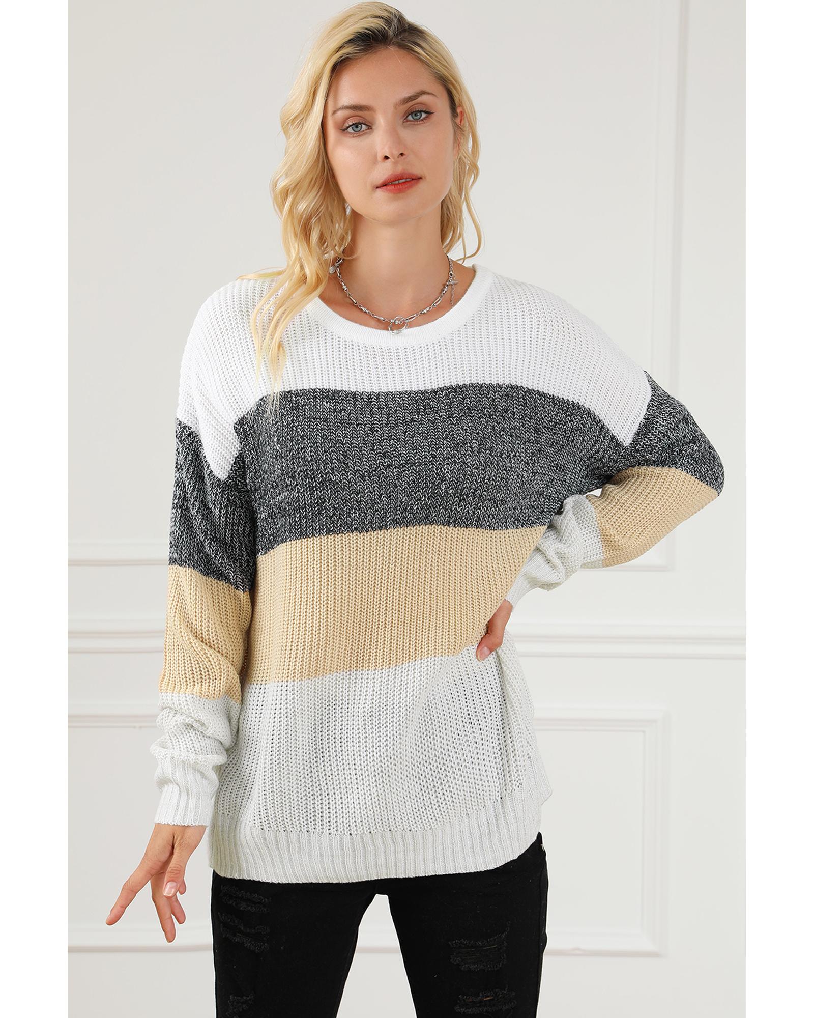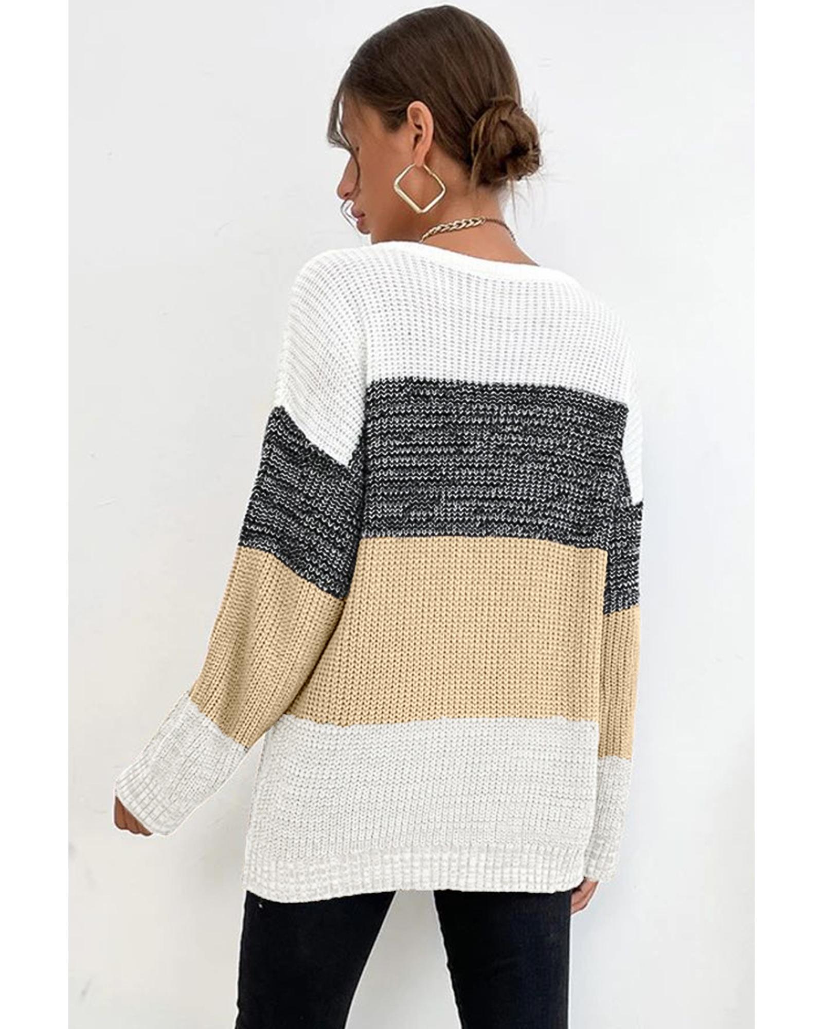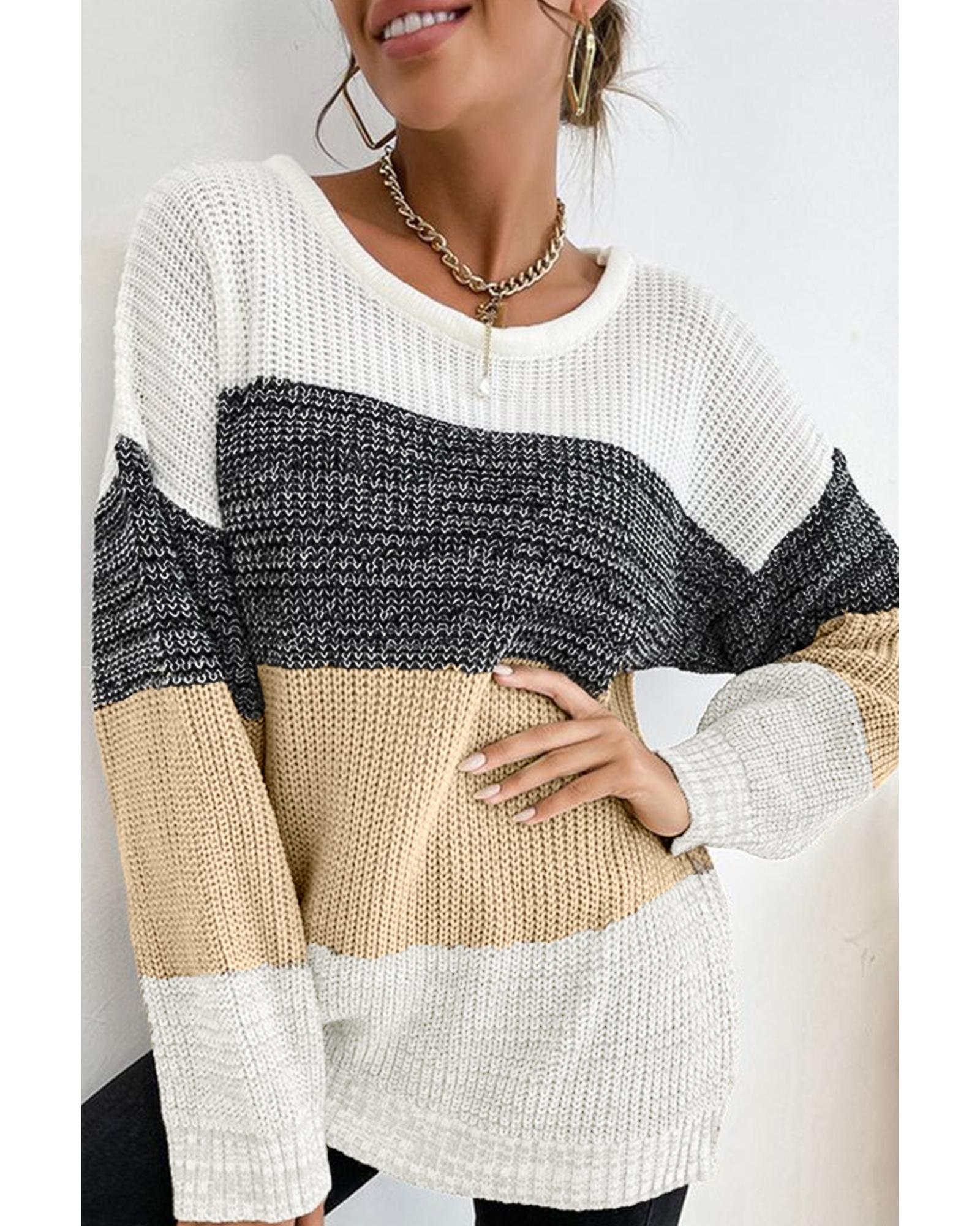 Multicolour Color Block Drop Shoulder Knit Sweater – XL