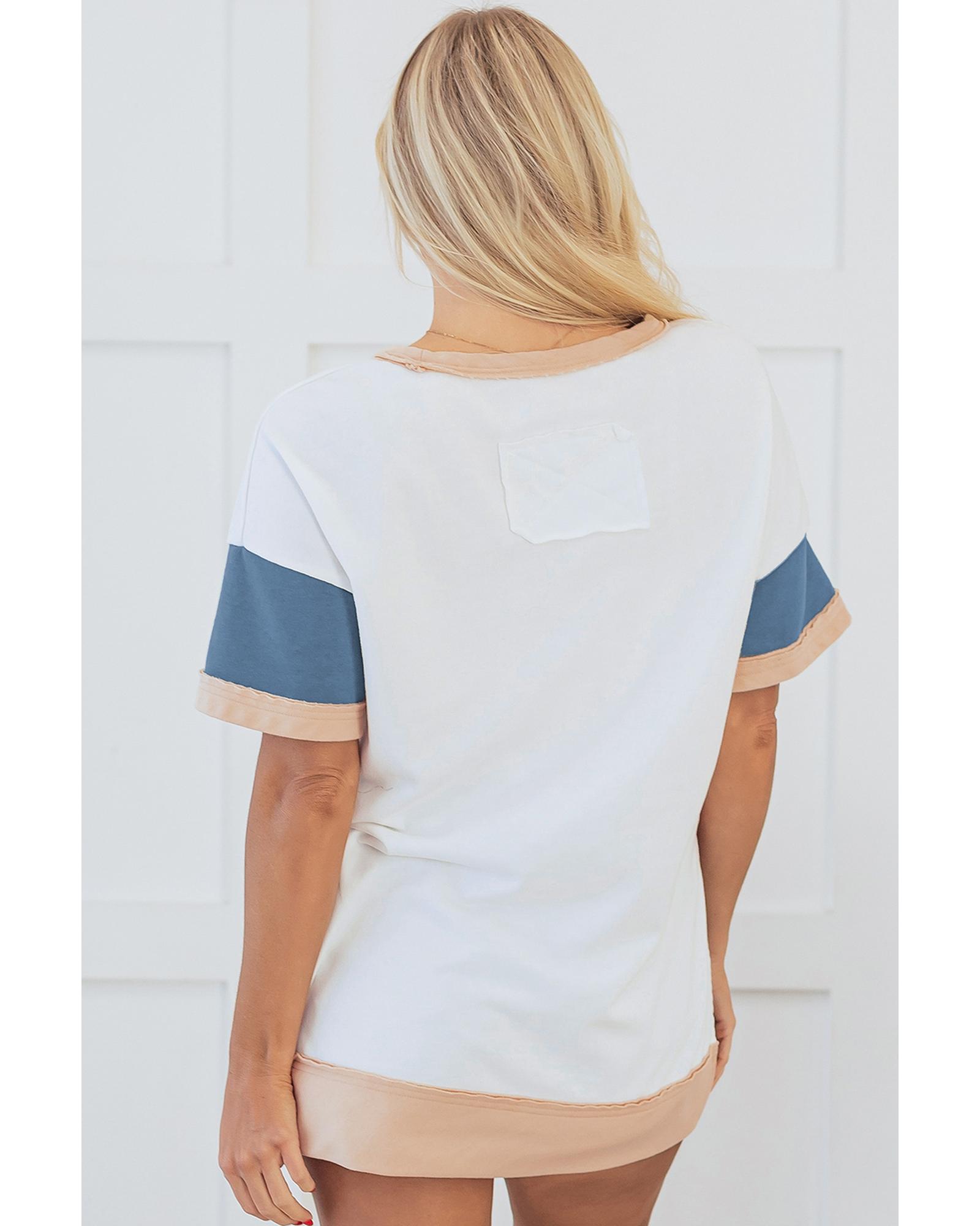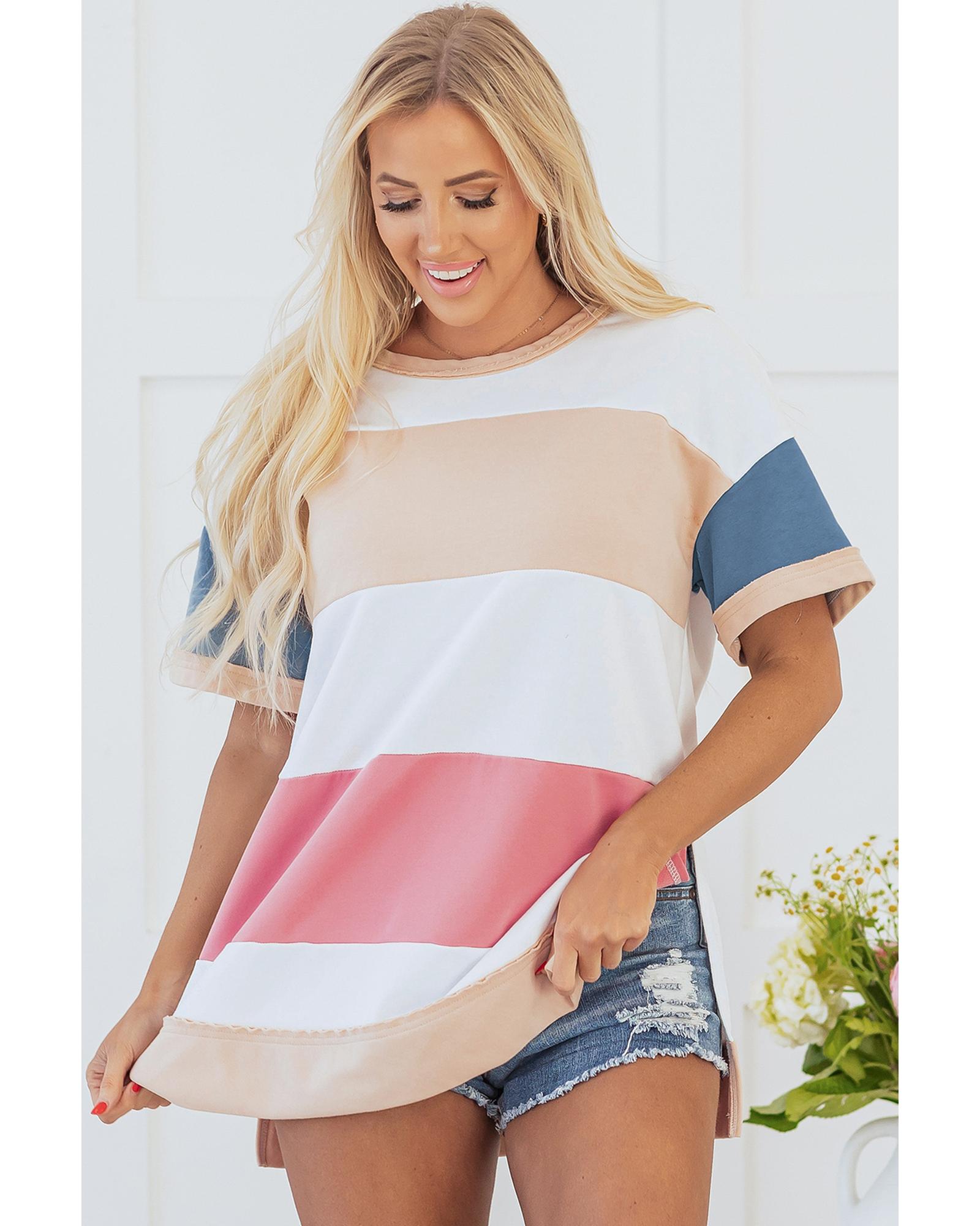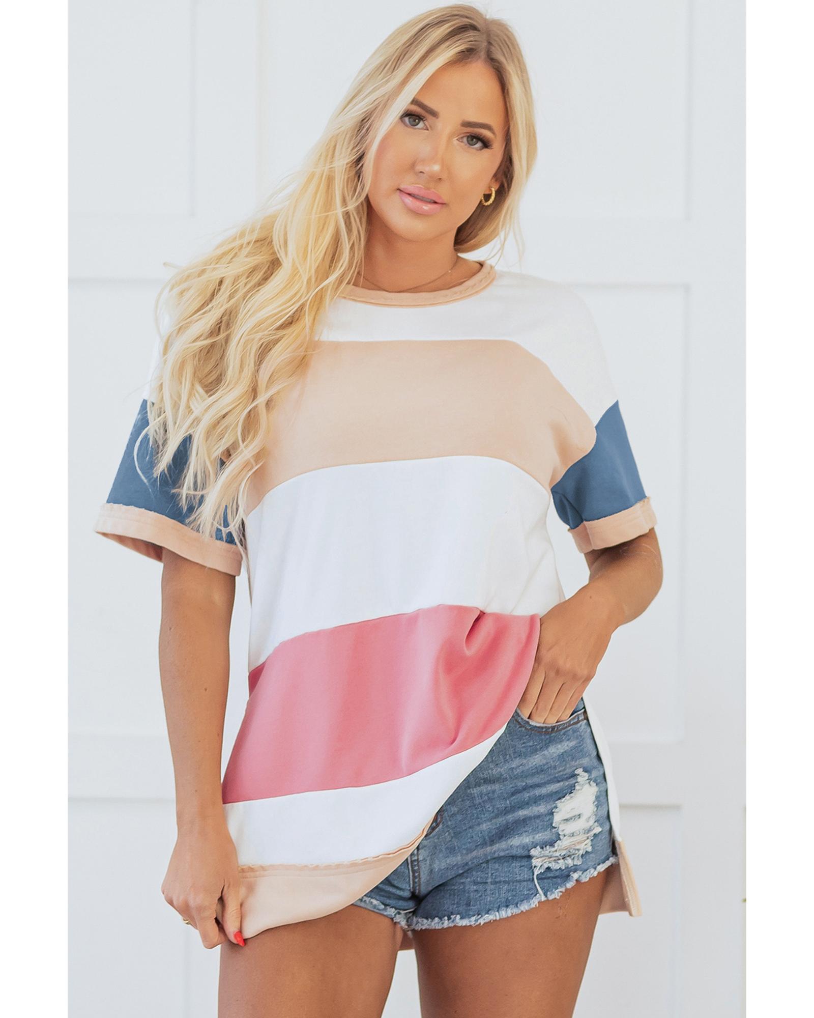 Multicolour Colorblock Patchwork Side Split Tunic T Shirt – M