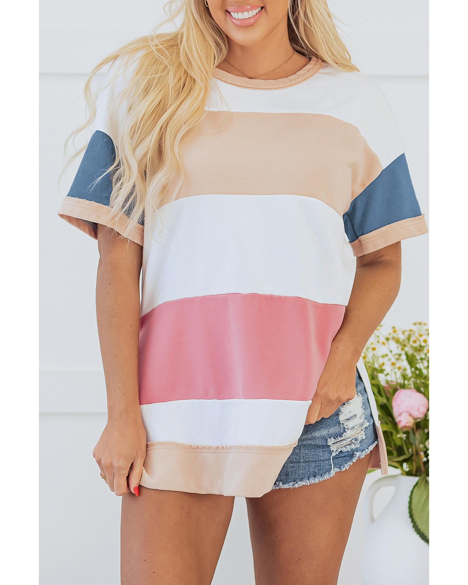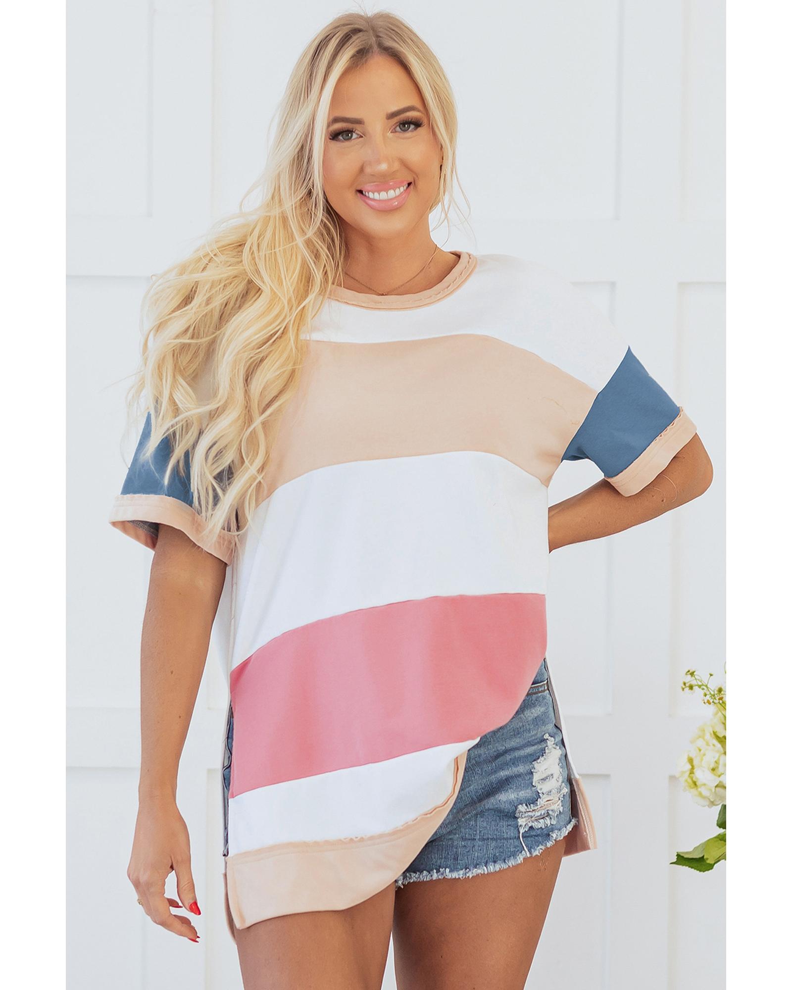 Multicolour Colorblock Patchwork Side Split Tunic T Shirt – XL
