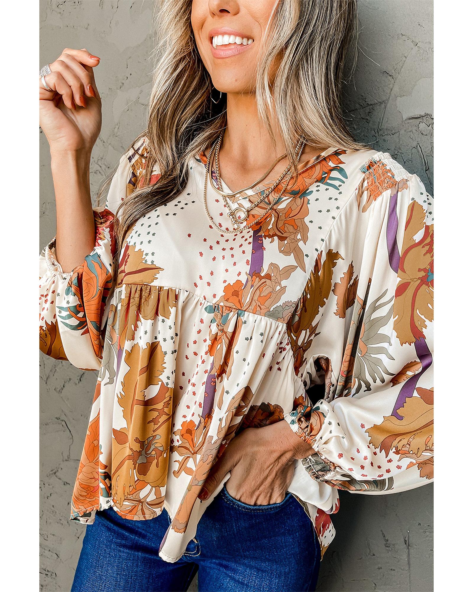 Multicolour Floral Print V Neck Babydoll Blouse – L