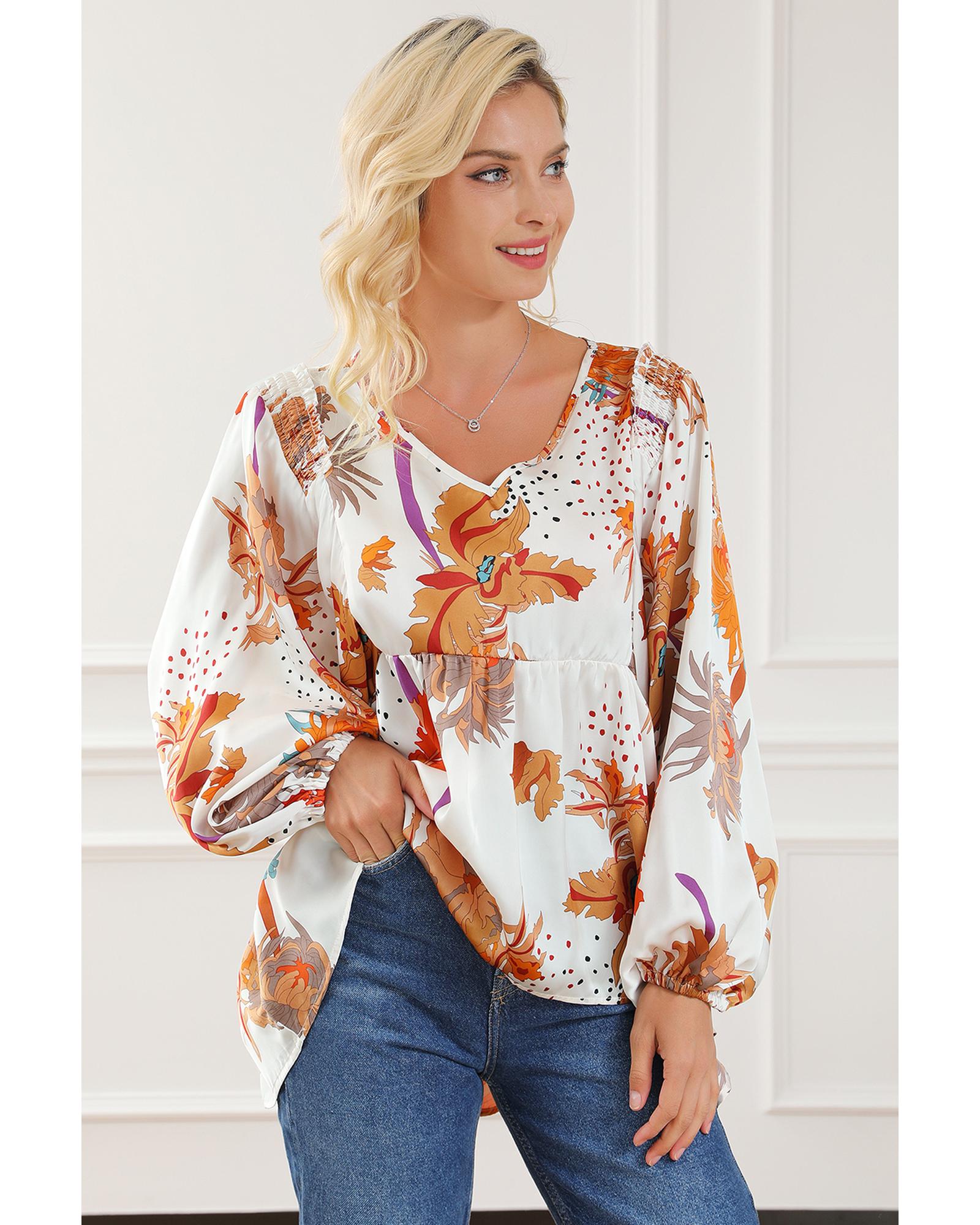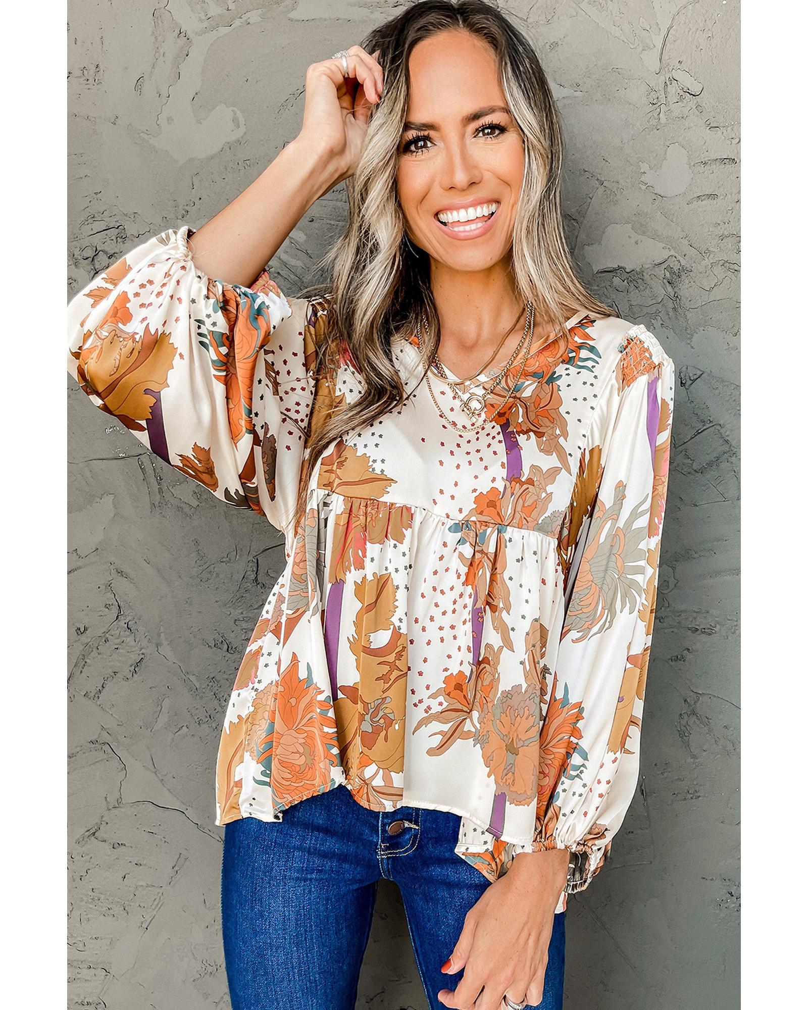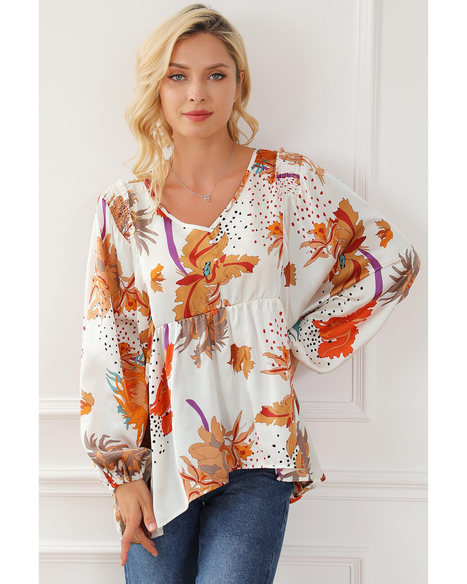 Multicolour Floral Print V Neck Babydoll Blouse – XL