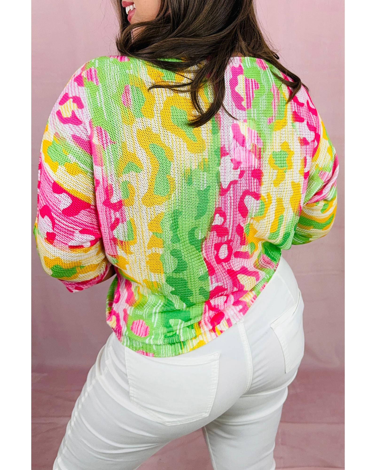 Multicolour Leopard Color Block Knitted Crewneck Plus Size T Shirt – 4X