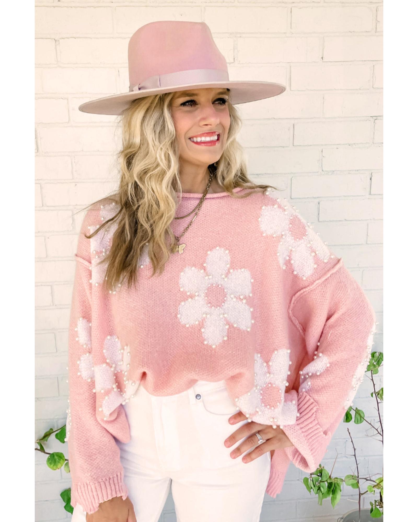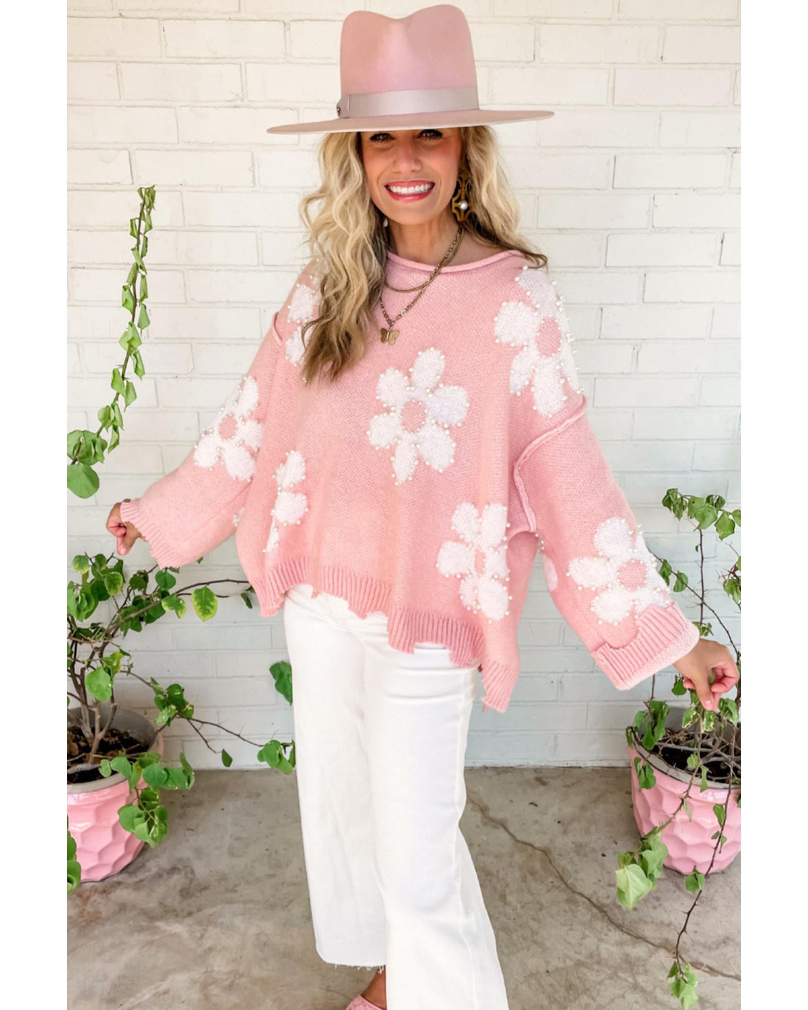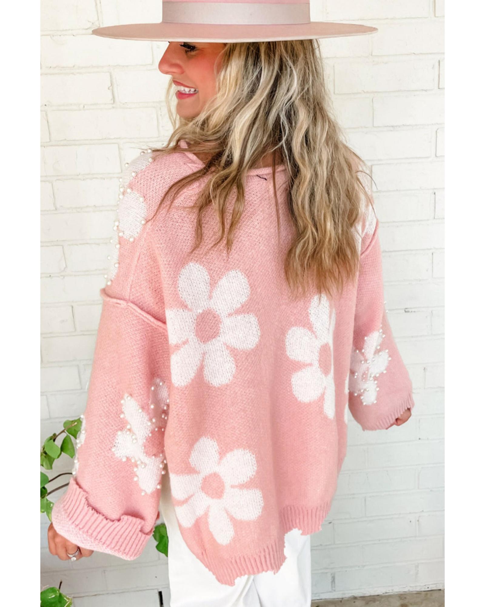 - Multicolour Pearl Beaded Floral Drop Shoulder Sweater