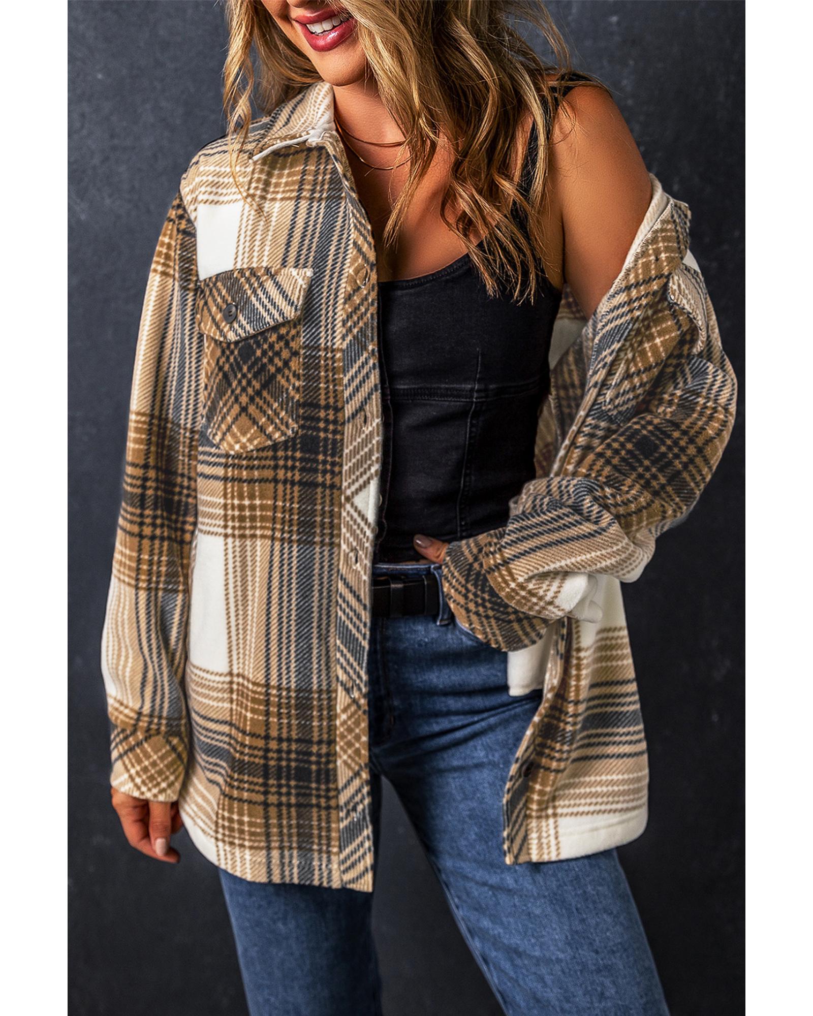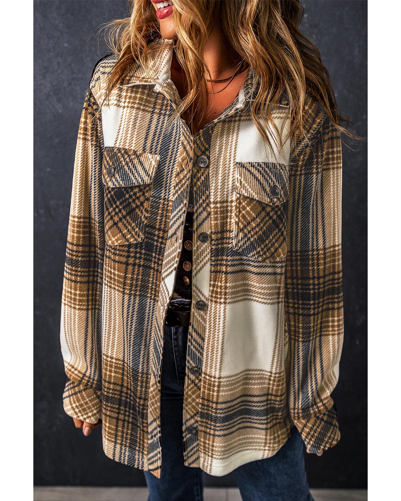 Multicolour Plaid Print Flap Pocket Button Up Shacket – S
