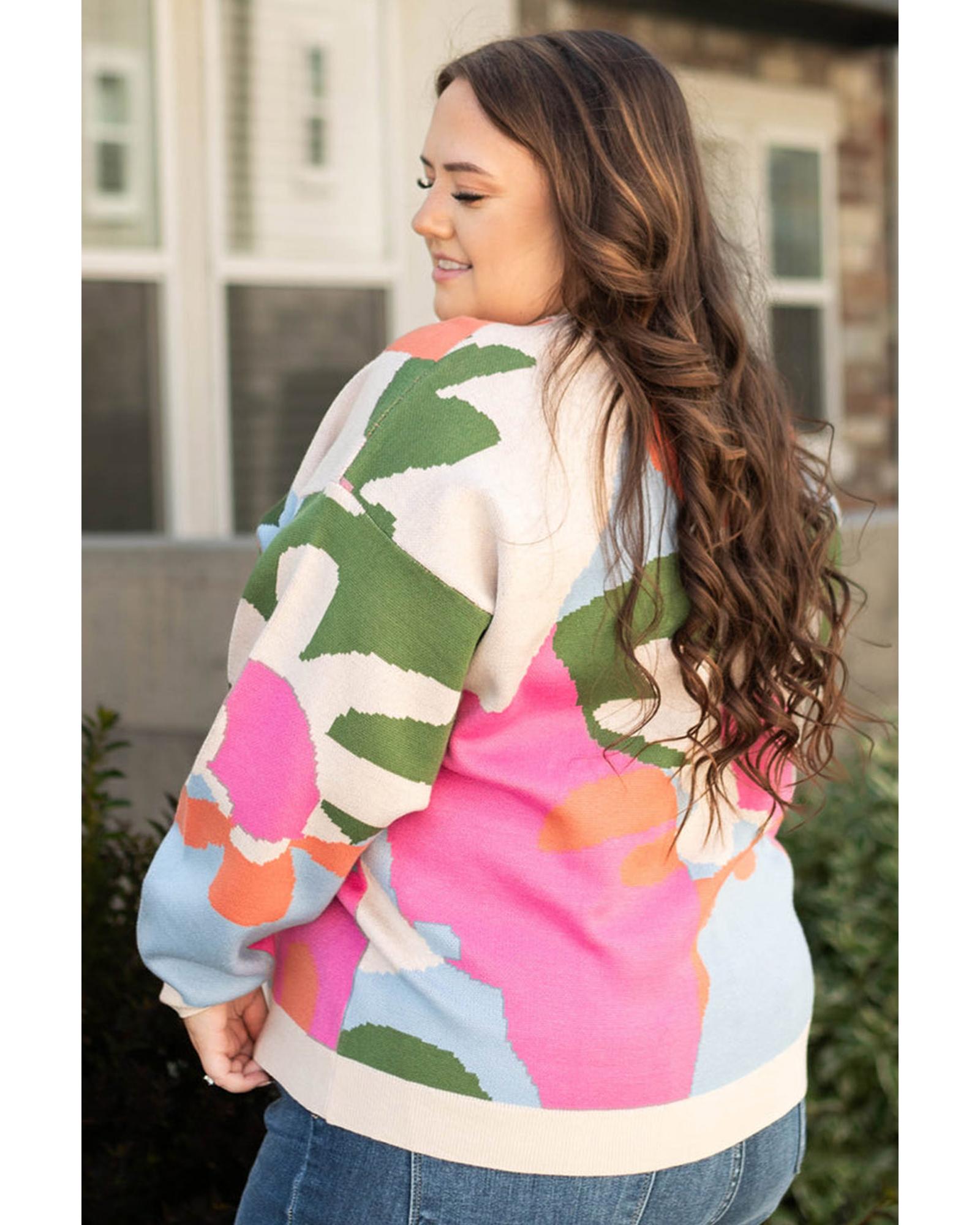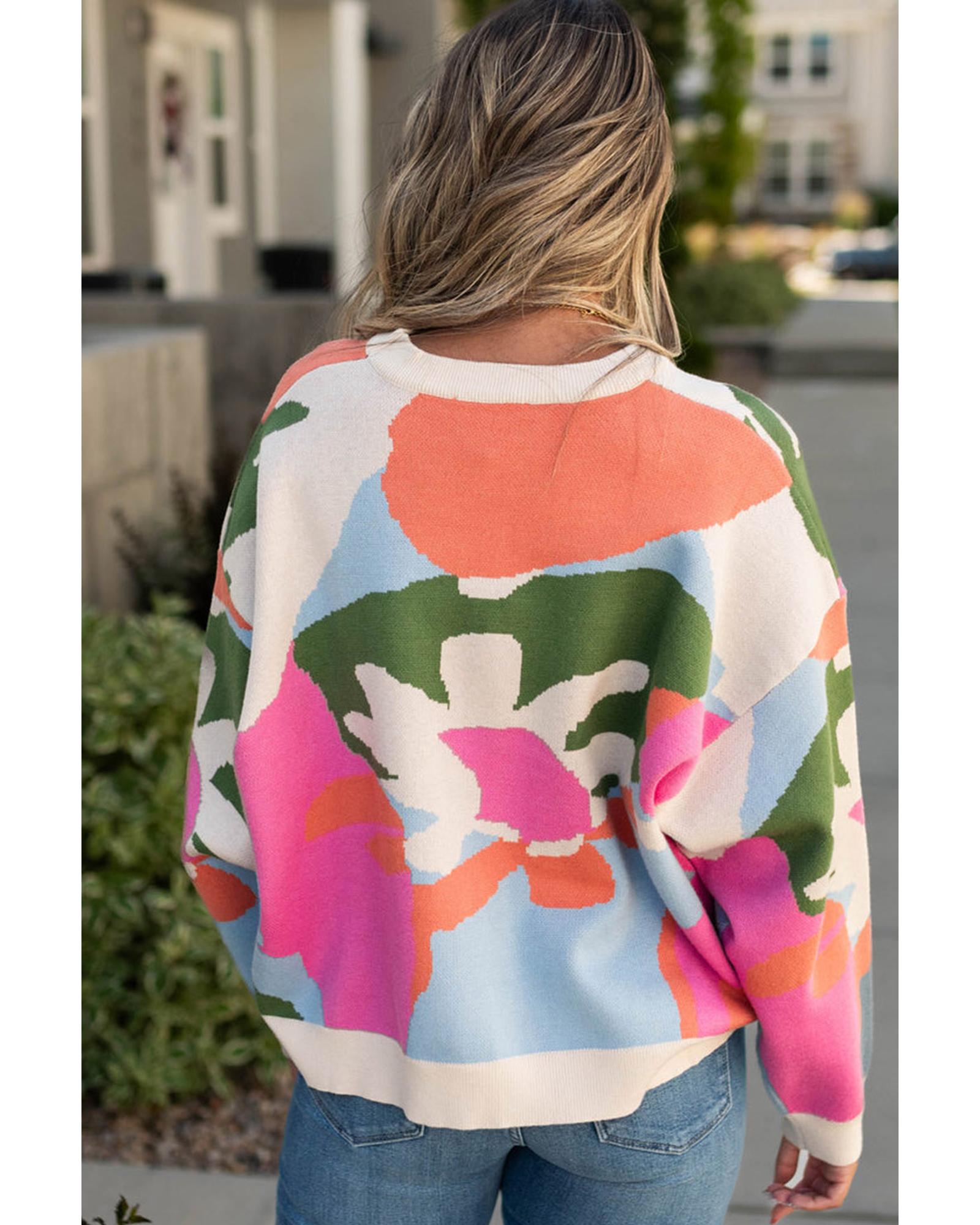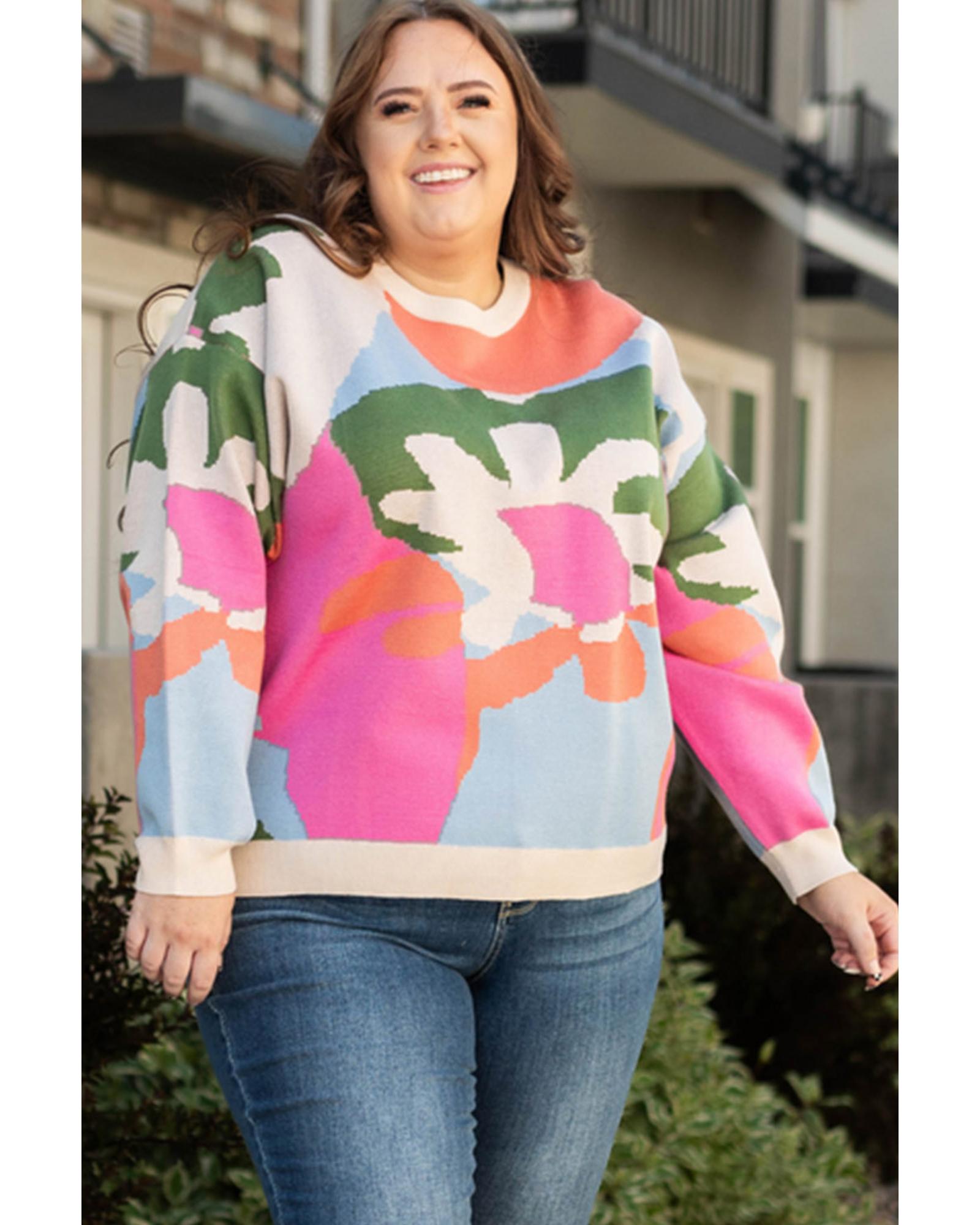 Multicolour Plus Size Floral Drop Shoulder Sweater – 1X