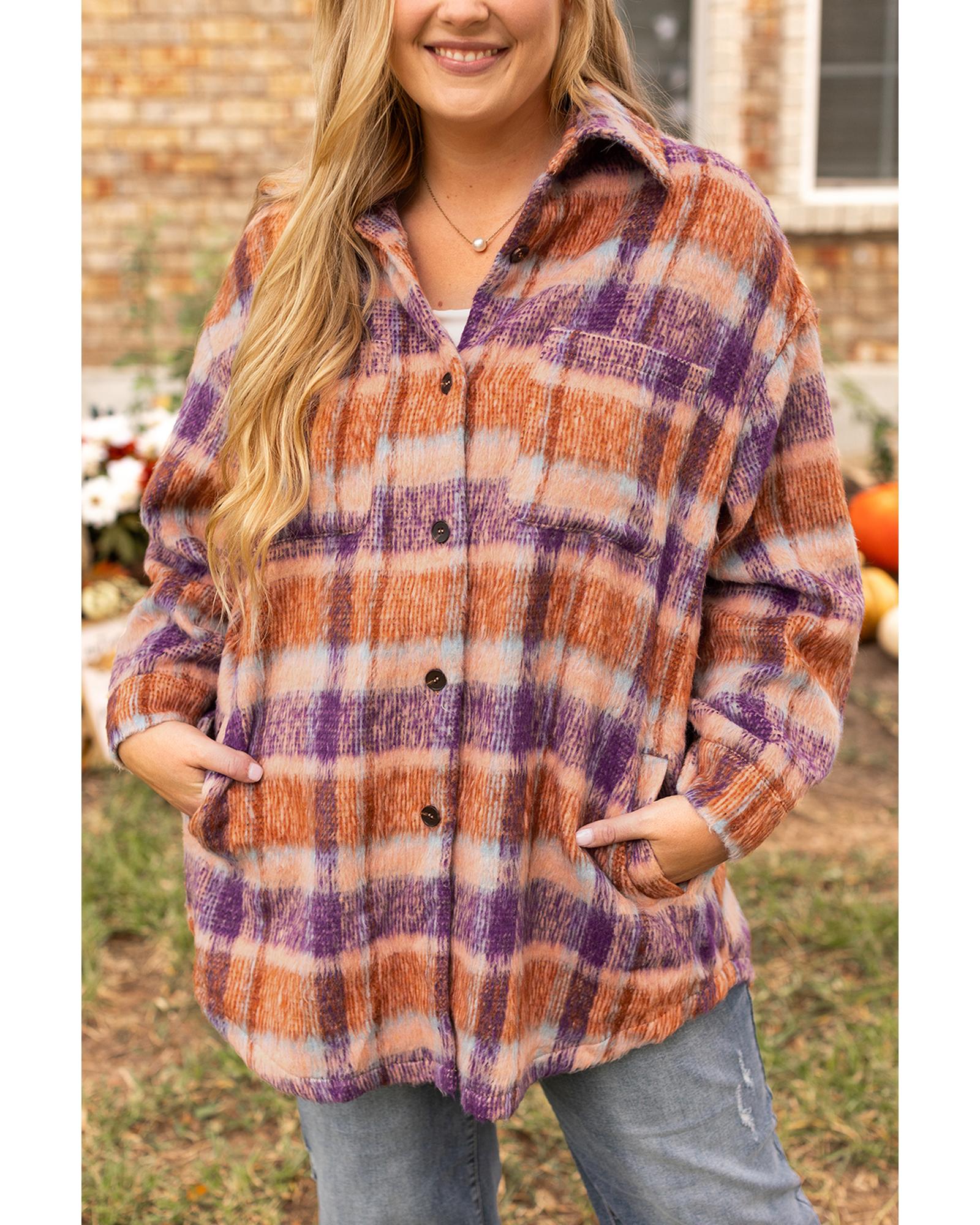 Multicolour Plus Size Plaid Print Collared Button up Jacket – 1X