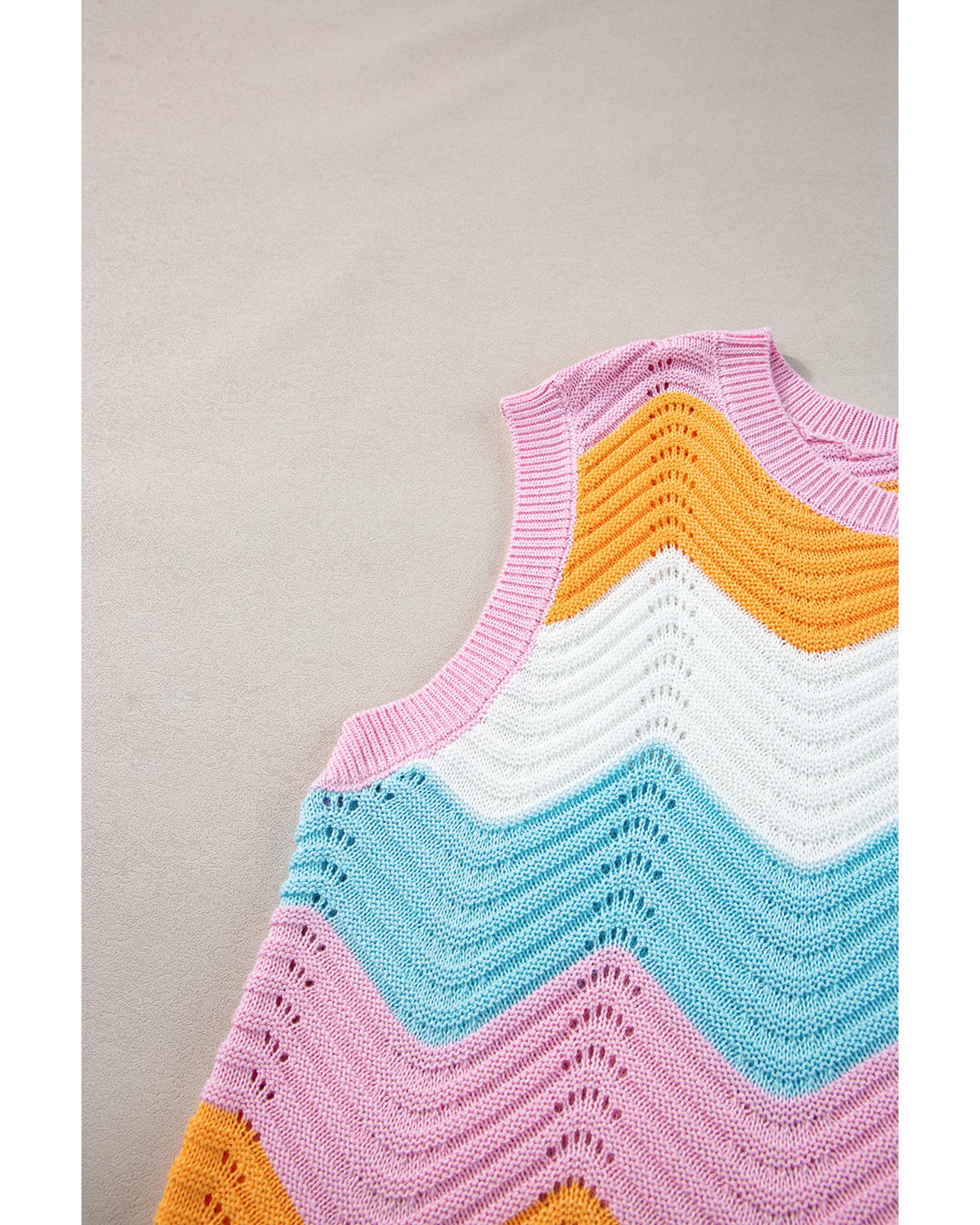 • Multicolored knitted tank top with crocheted knit design