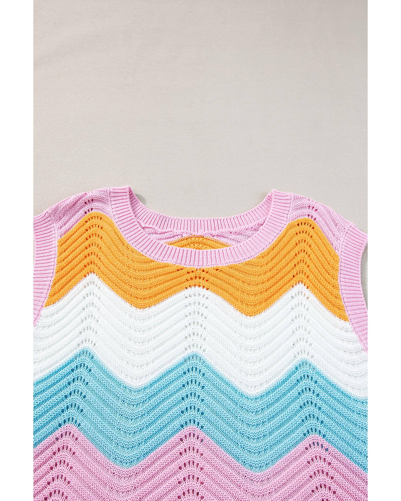 Multicolour Striped Colorblock Scalloped Hem Knitted Vest – S