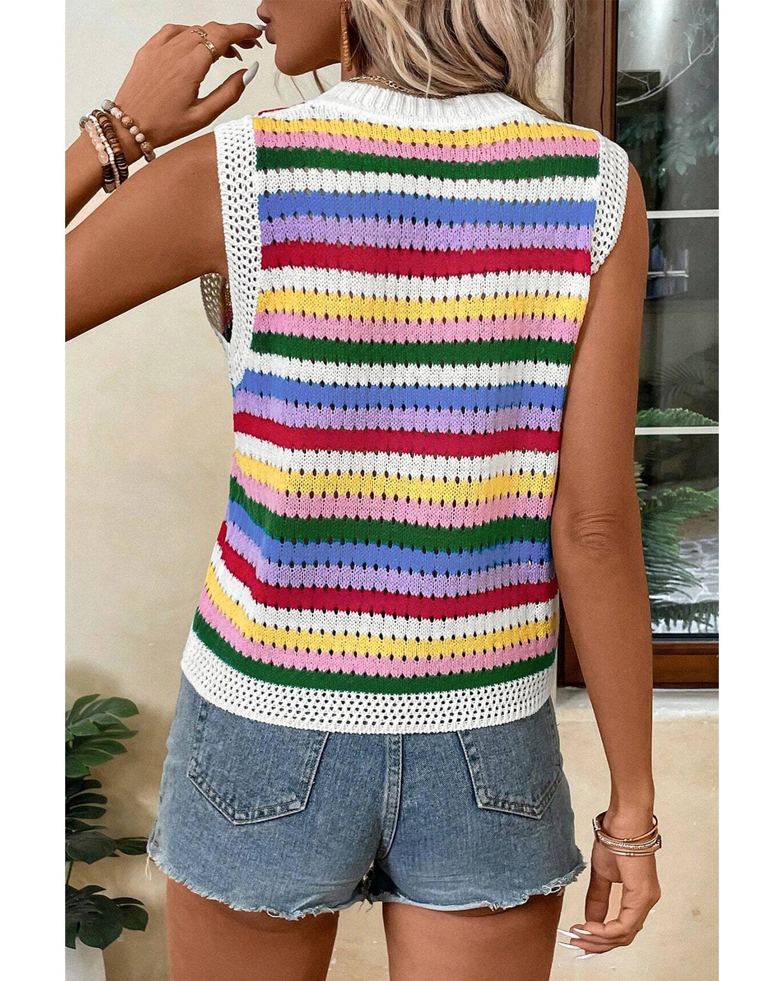 Multicolour Striped Knitted Eyelet Slim Sweater Vest – S
