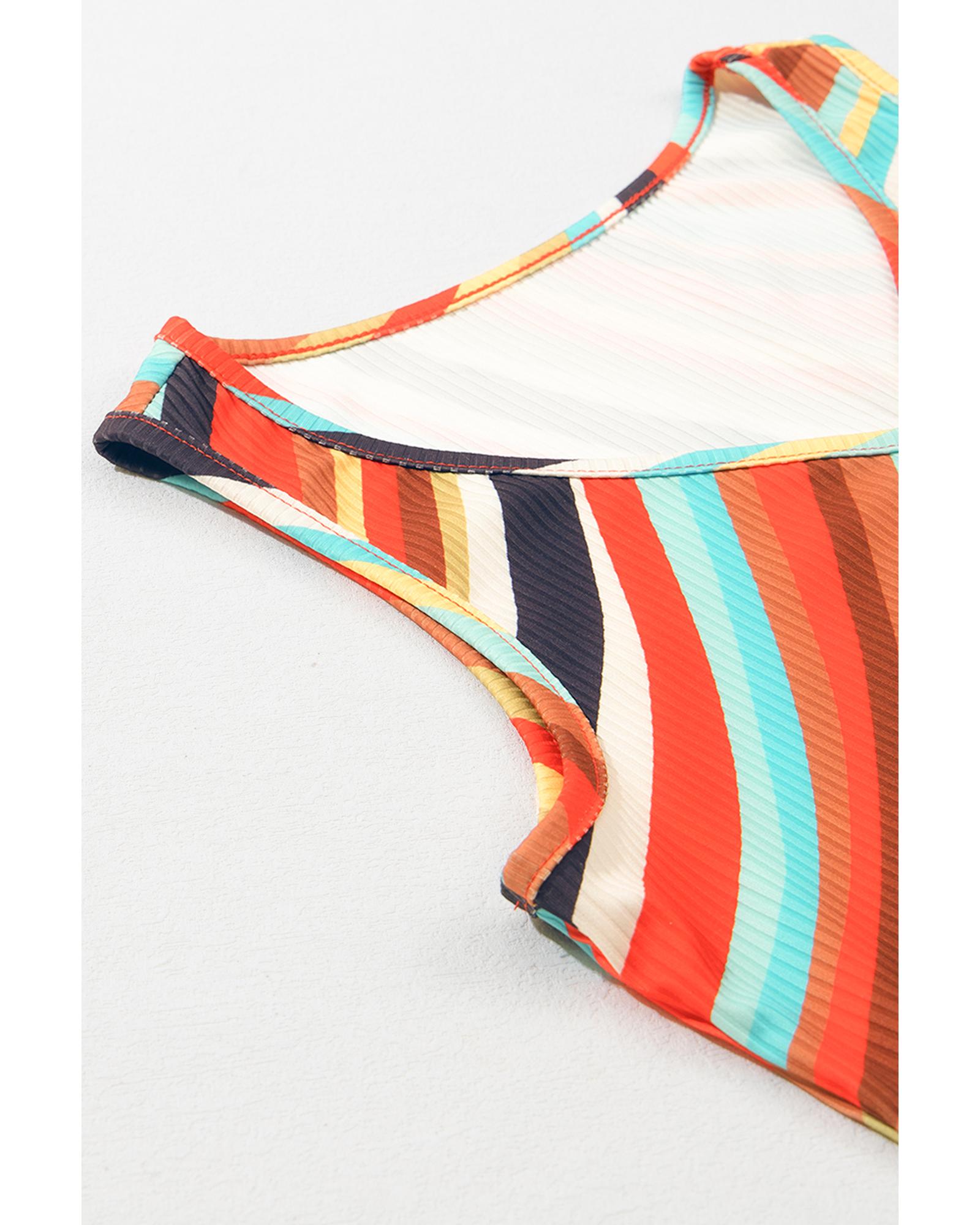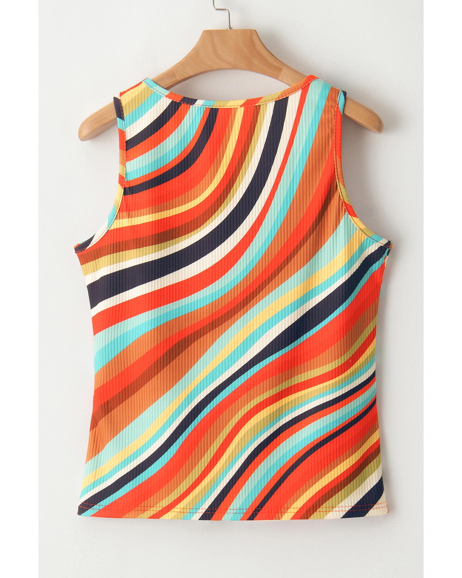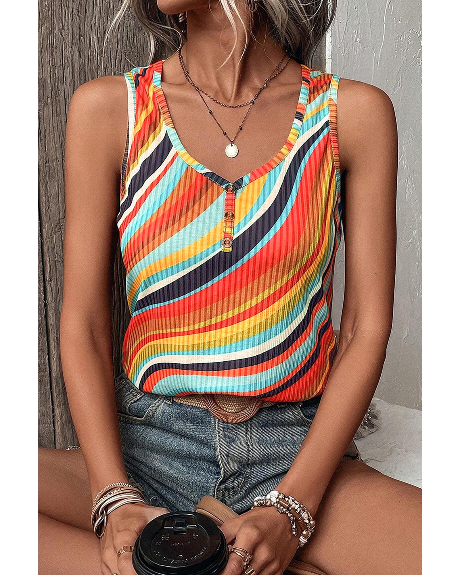 Multicolour Wavy Striped Buttoned V Neck Tank Top – XL