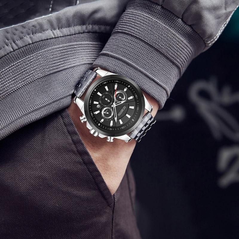 Multifunctional Steel Strap Men Watch – Fashionable Quartz – Rose Gold Black