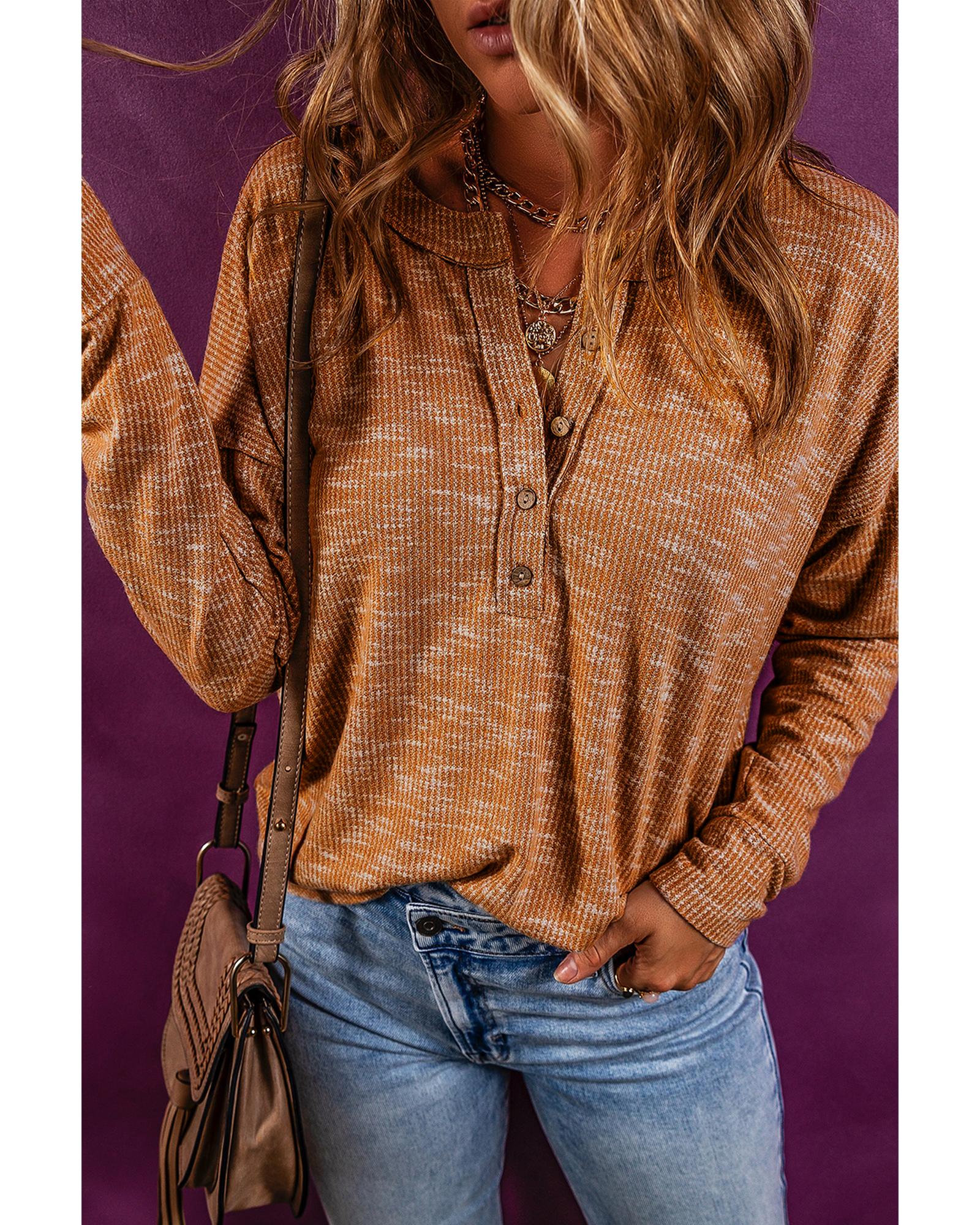 Mustard Rib Knit Drop Shoulder Long Sleeve Henley Top – XL