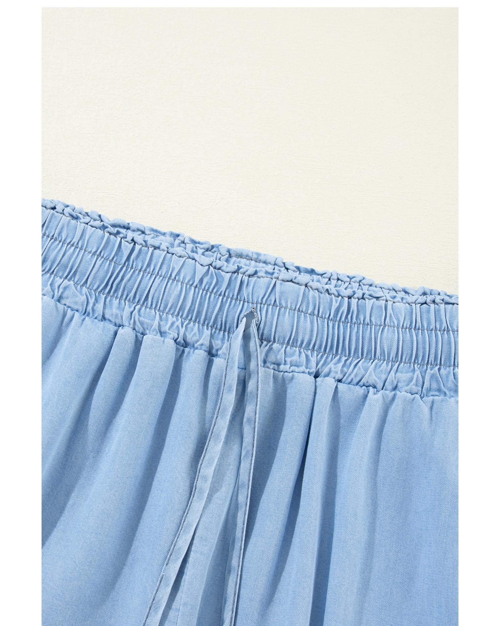 Myosotis Drawstring High Waist Wide Leg Denim Pants – XL