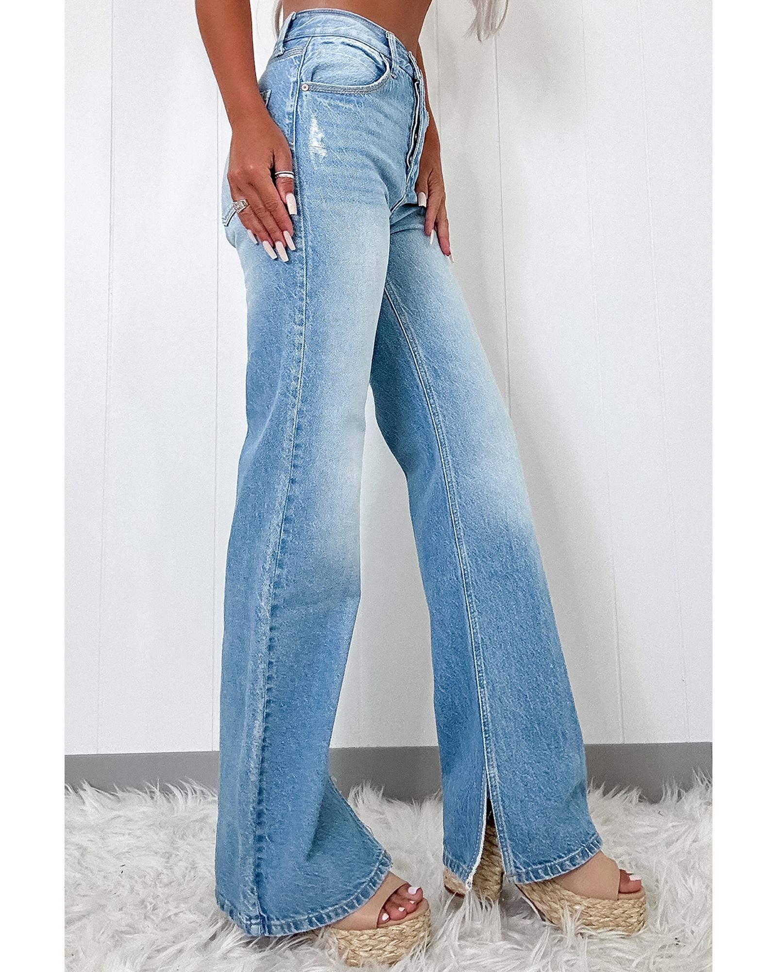 Myosotis High Rise Shift Slit Leg Straight Jeans – 4 US