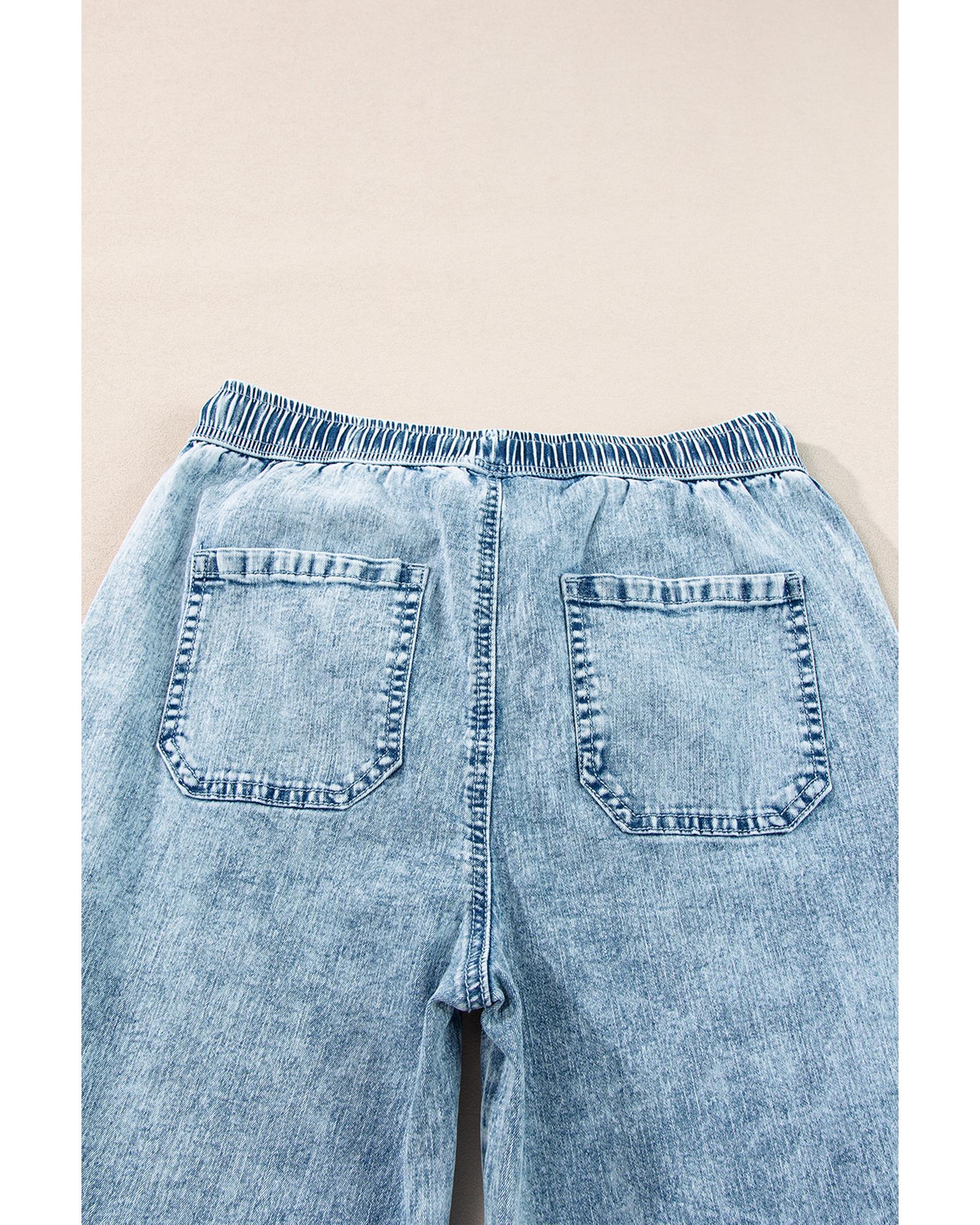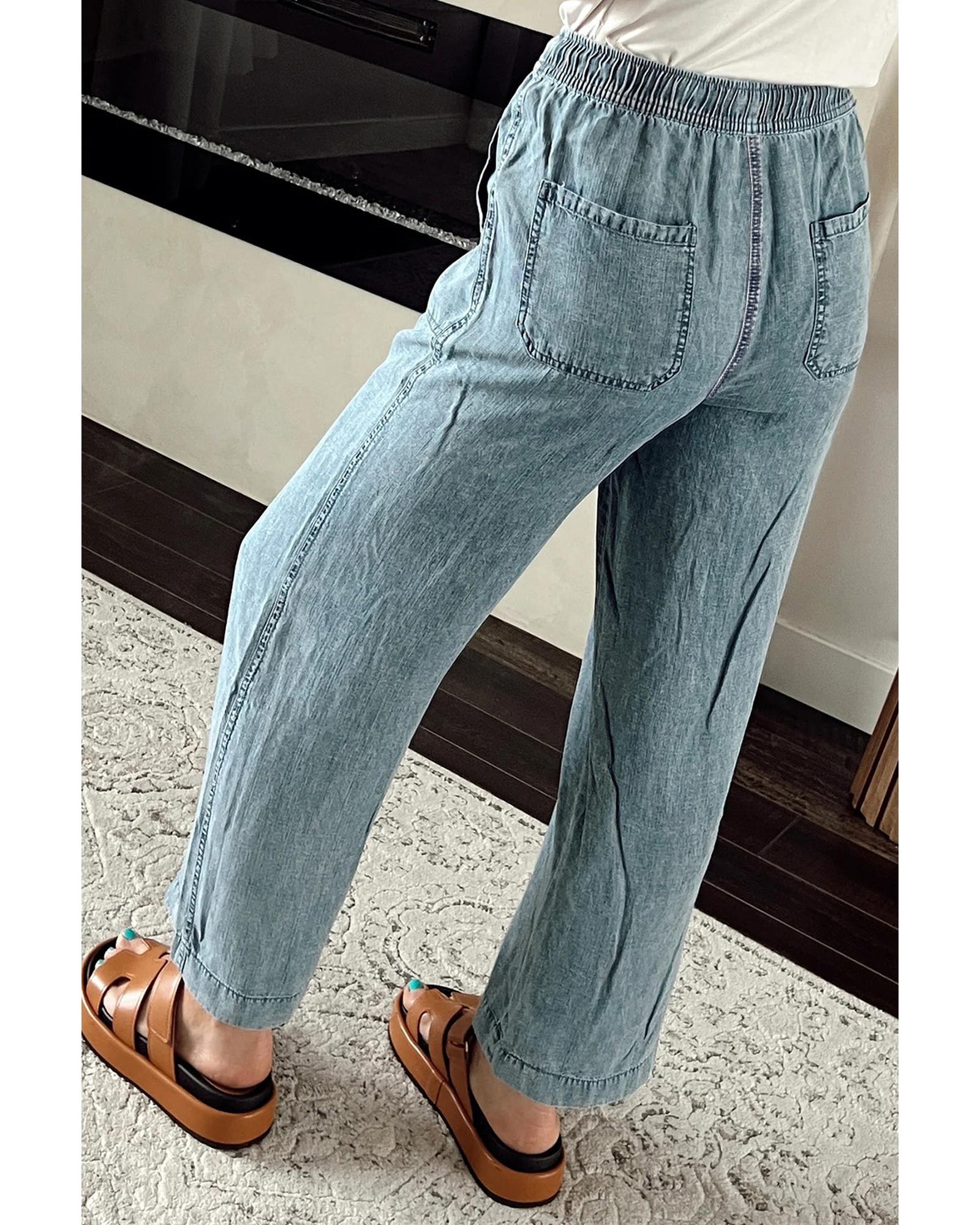 Myosotis Mineral Wash Drawstring Waist Loose Straight Denim Pants - 8 US