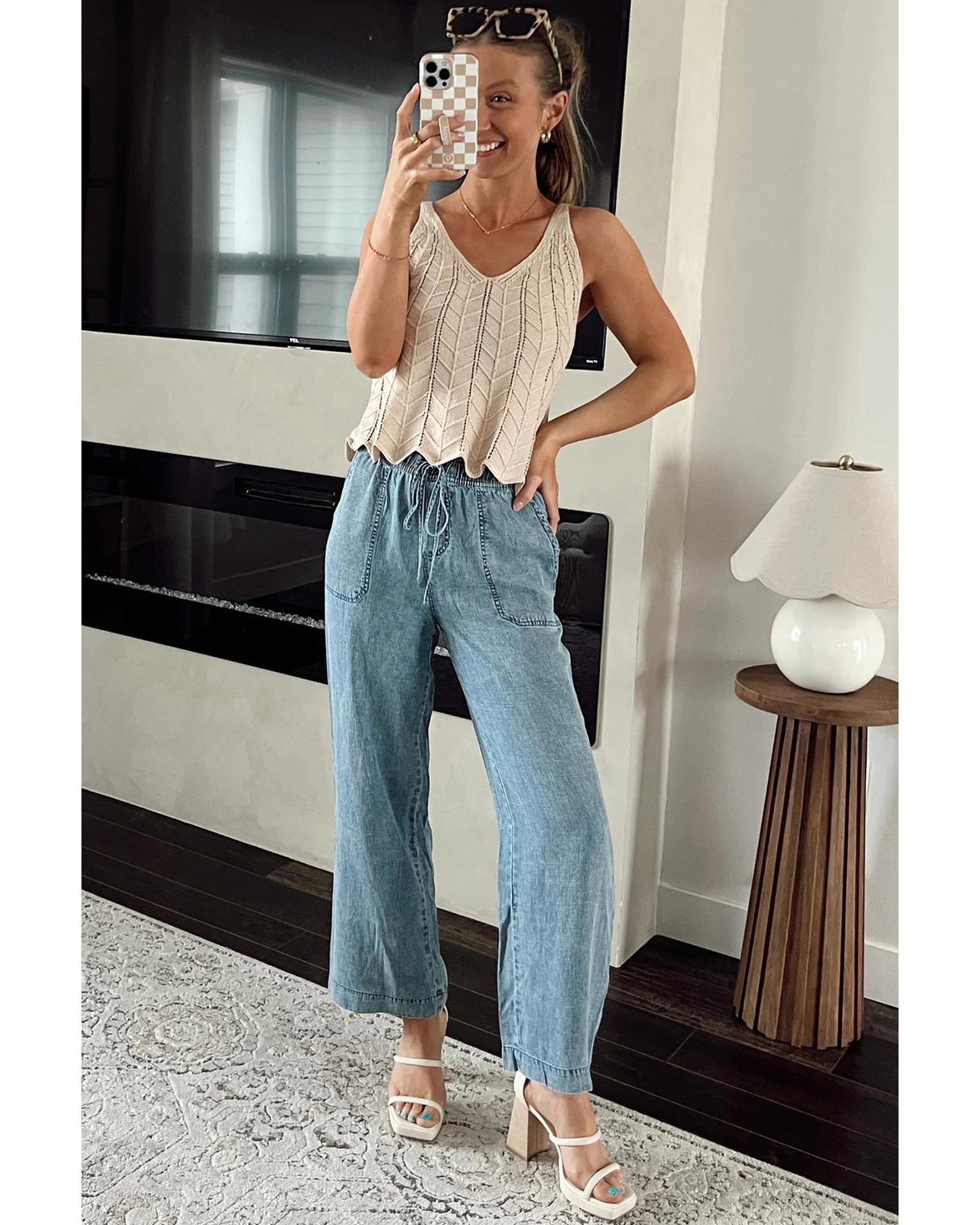 Myosotis Mineral Wash Drawstring Waist Loose Straight Denim Pants – 12 US