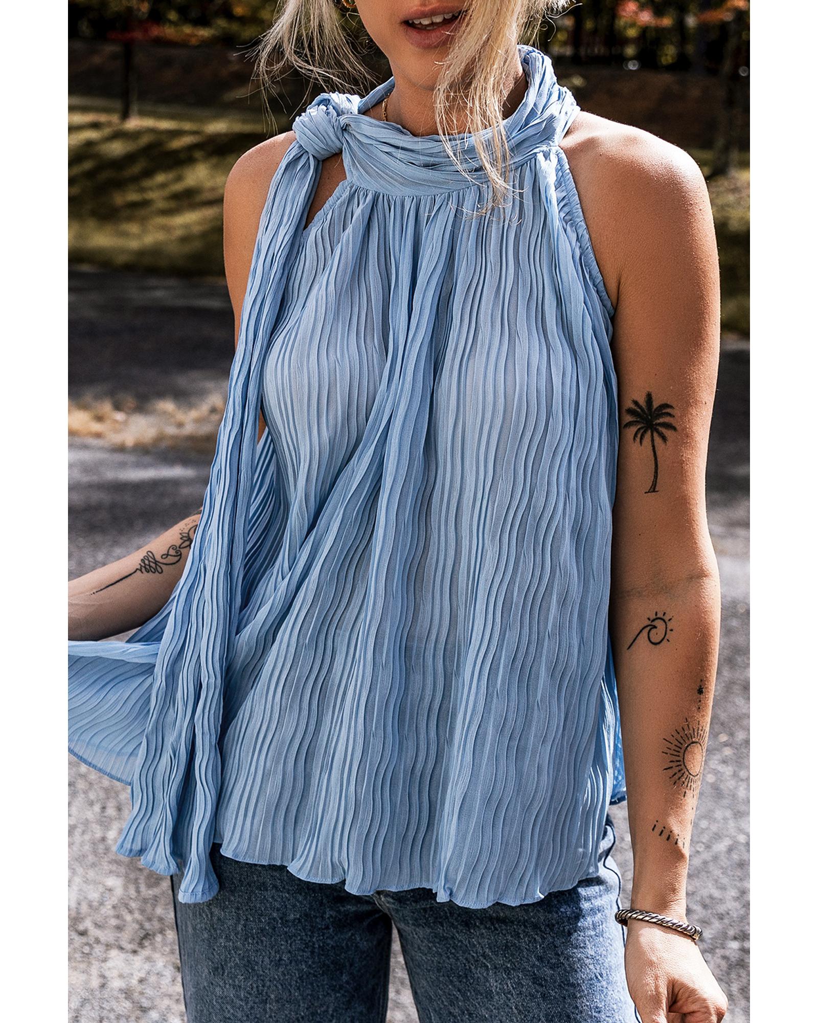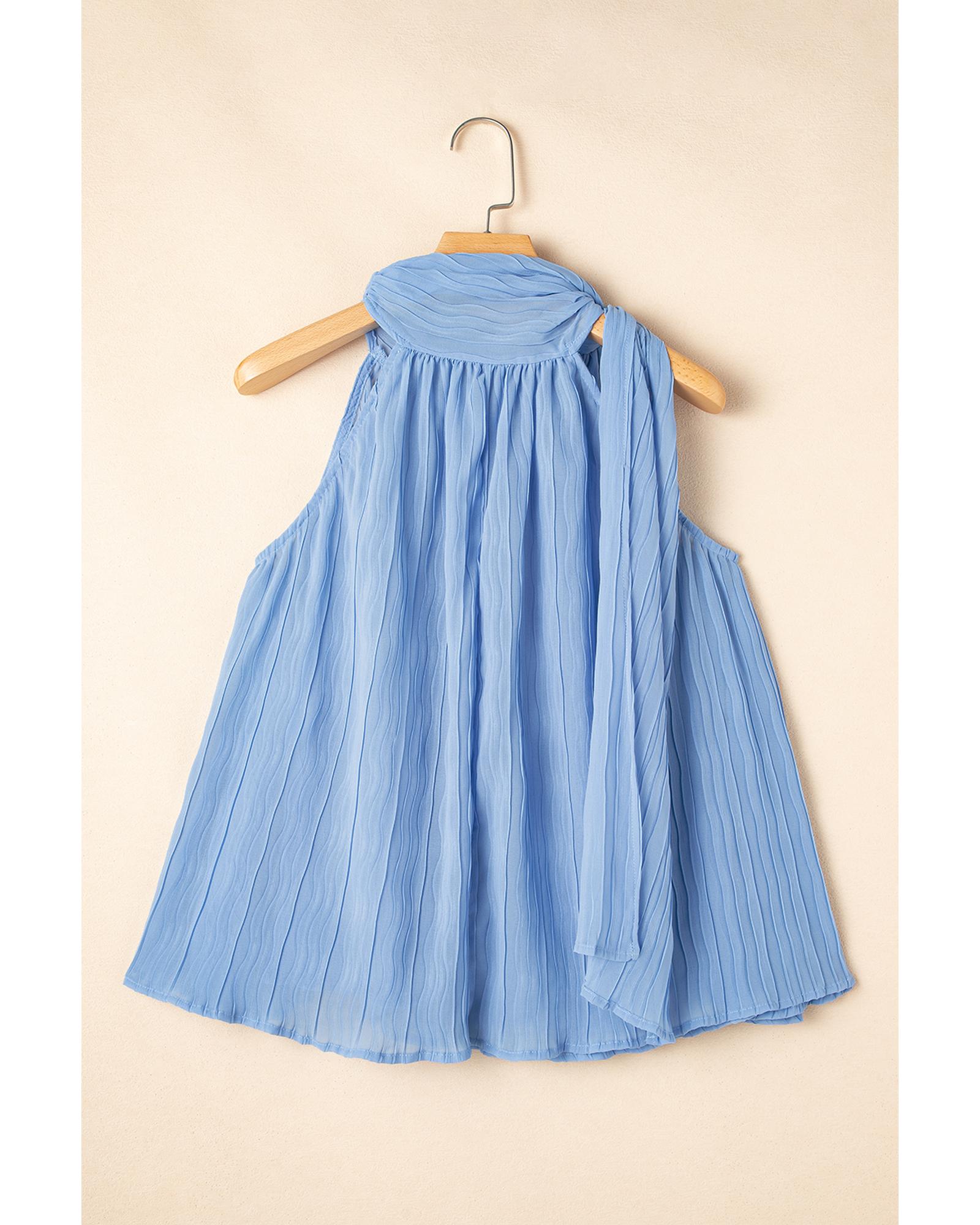 Myosotis Textured Pleated Tied Mock Neck Flowy Tank Top – XL