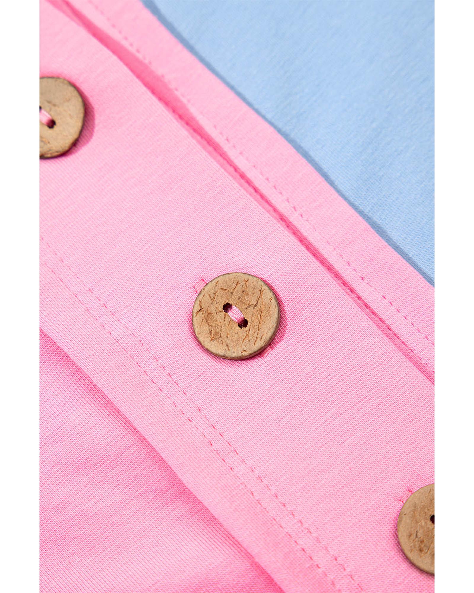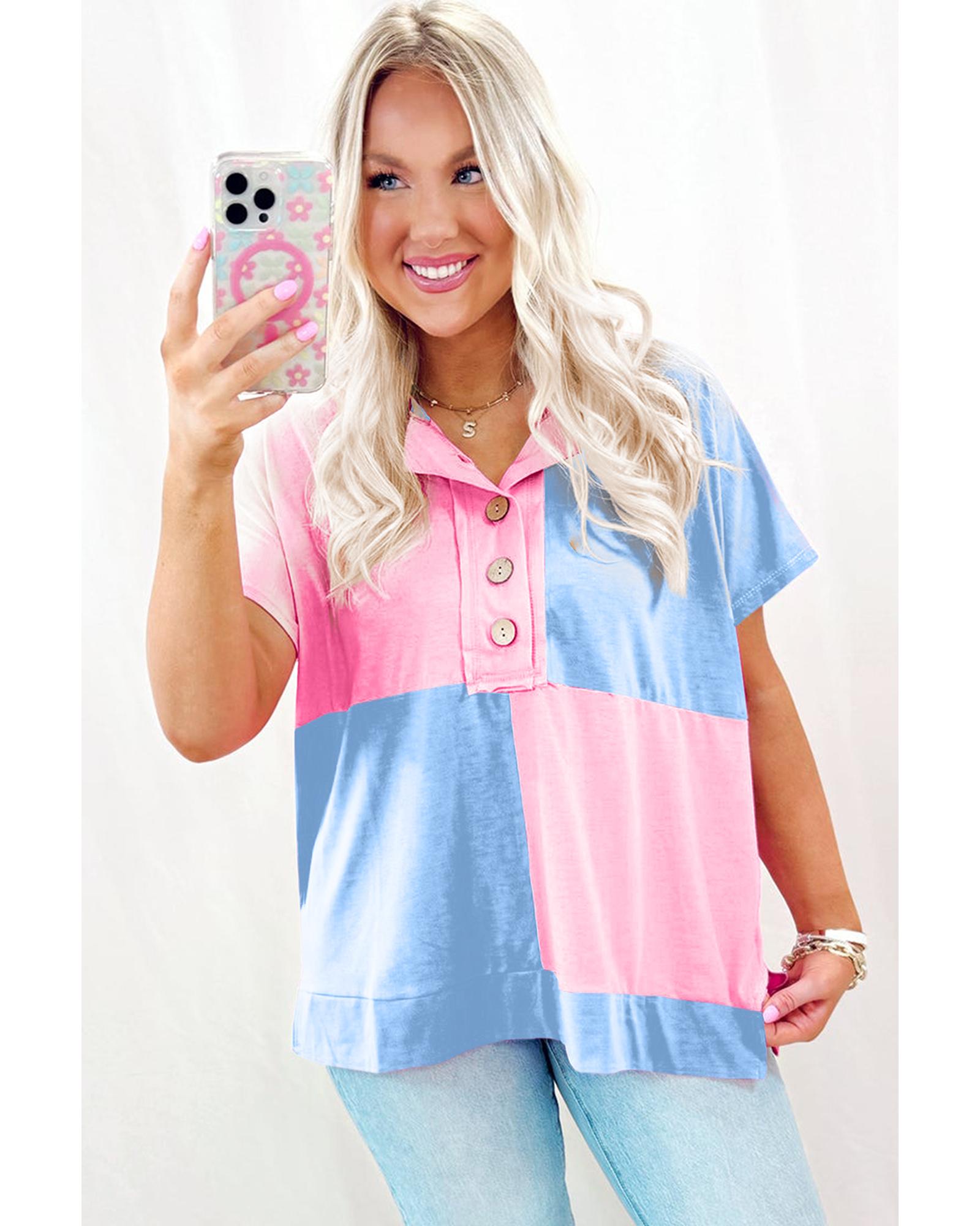 Myosotis Two Tone Half Buttons Collared T Shirt – M