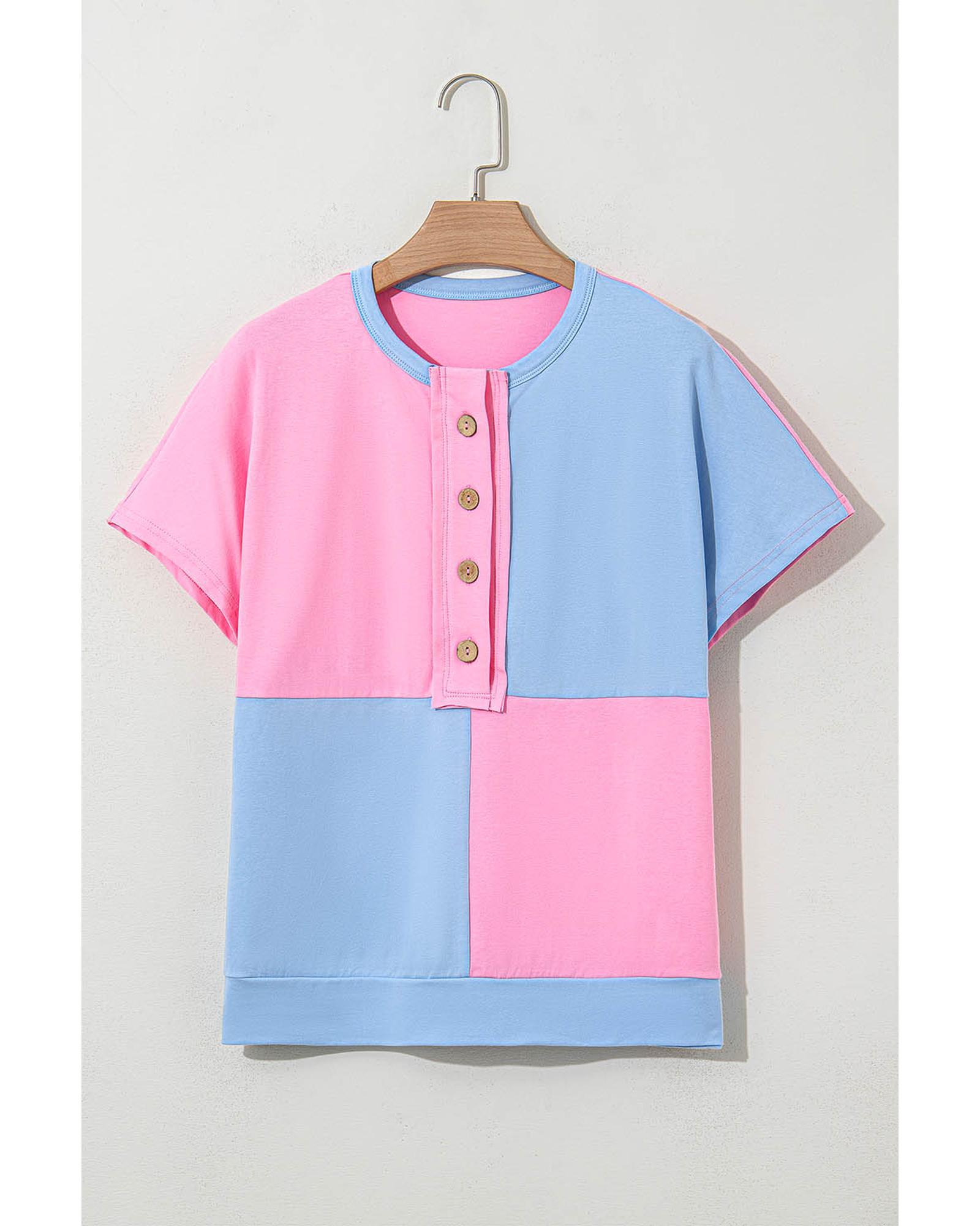 Myosotis Two Tone Half Buttons Collared T Shirt – S