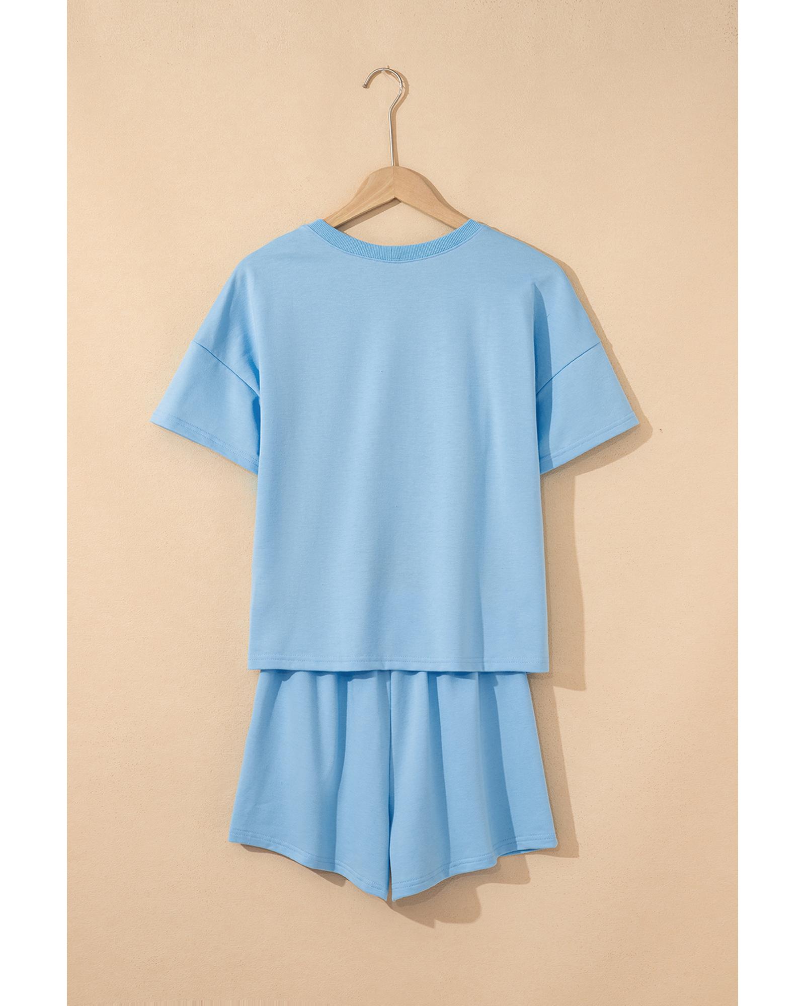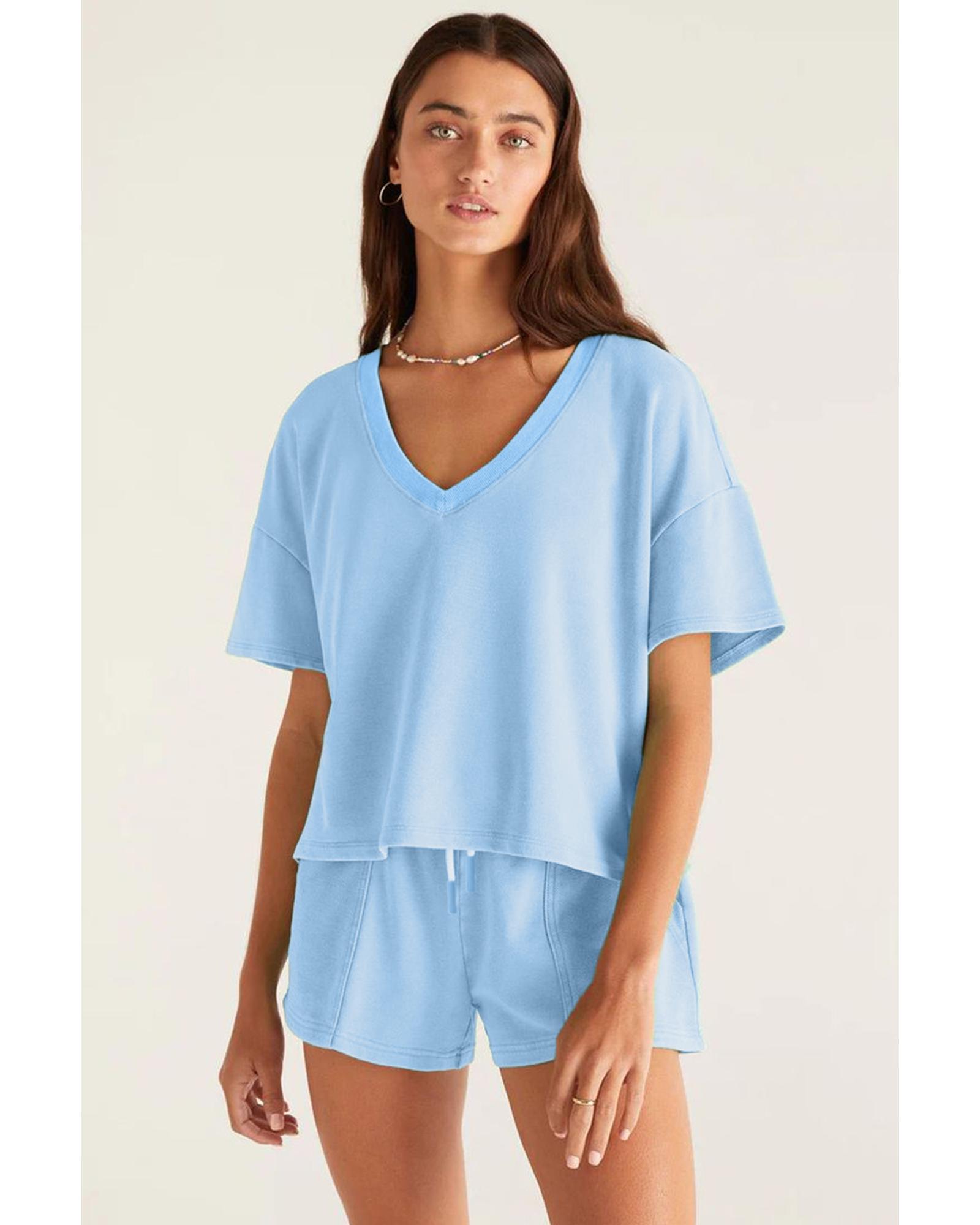 Myosotis V Neck Drop Shoulder Tee and Patchwork Drawstring Shorts Set – M