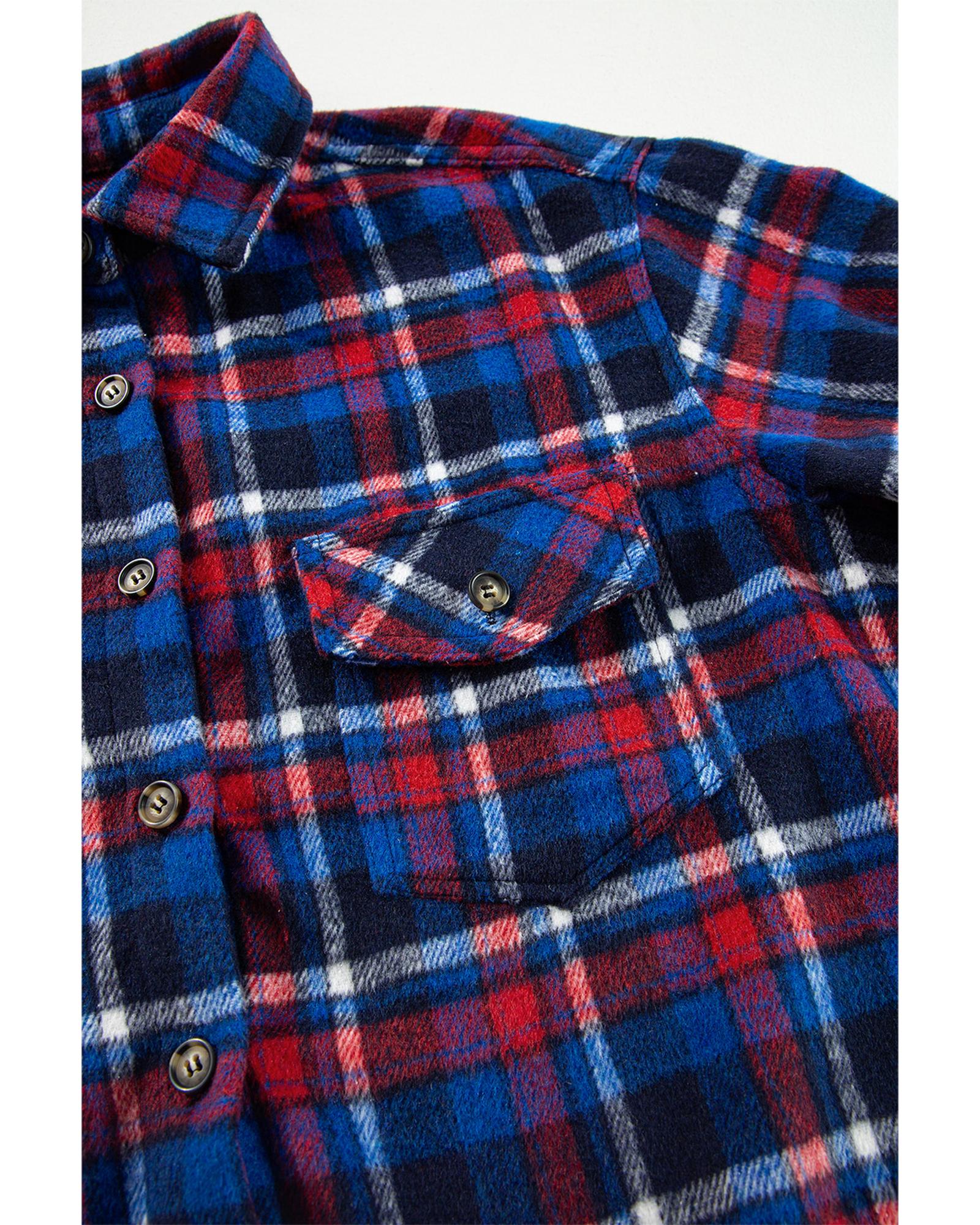Navy Blue Plaid Flap Pocket Button Up Shacket – L