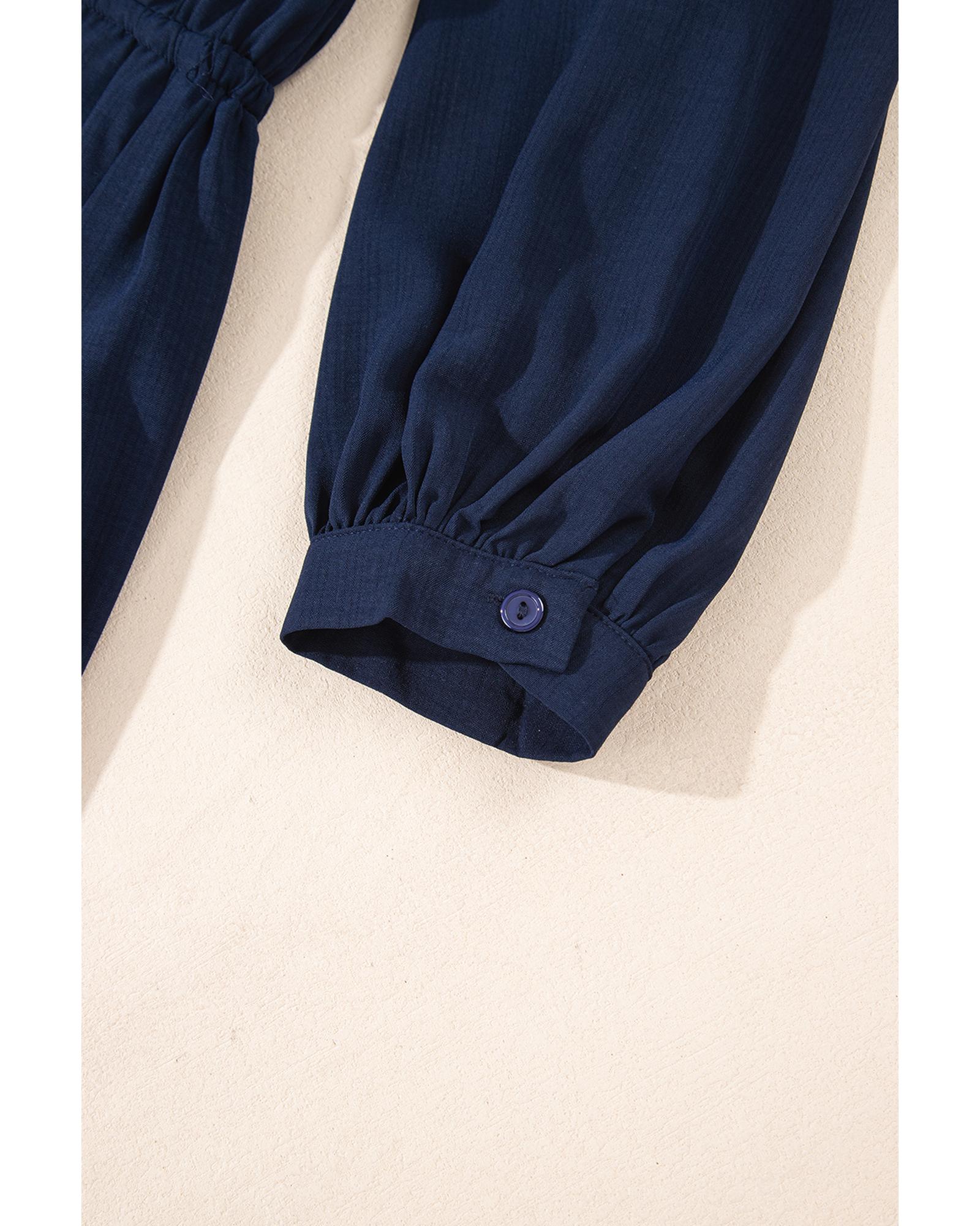 Navy Blue Solid Chest Pockets Tunic Shirt Mini Dress – L
