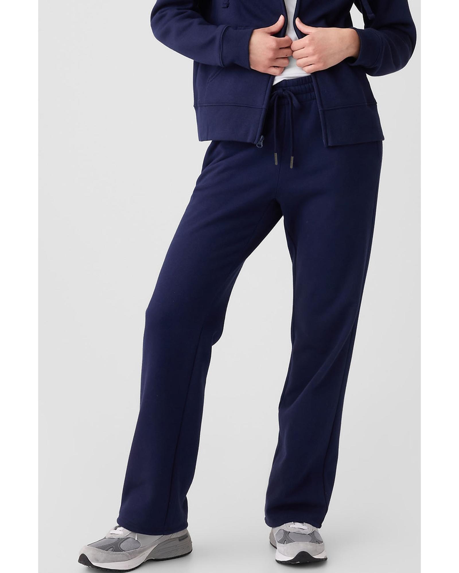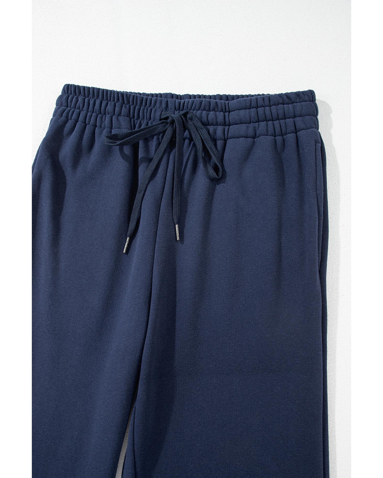 Navy Blue Solid Color Fleece Lined Drawstring Waist Casual Pants – XL