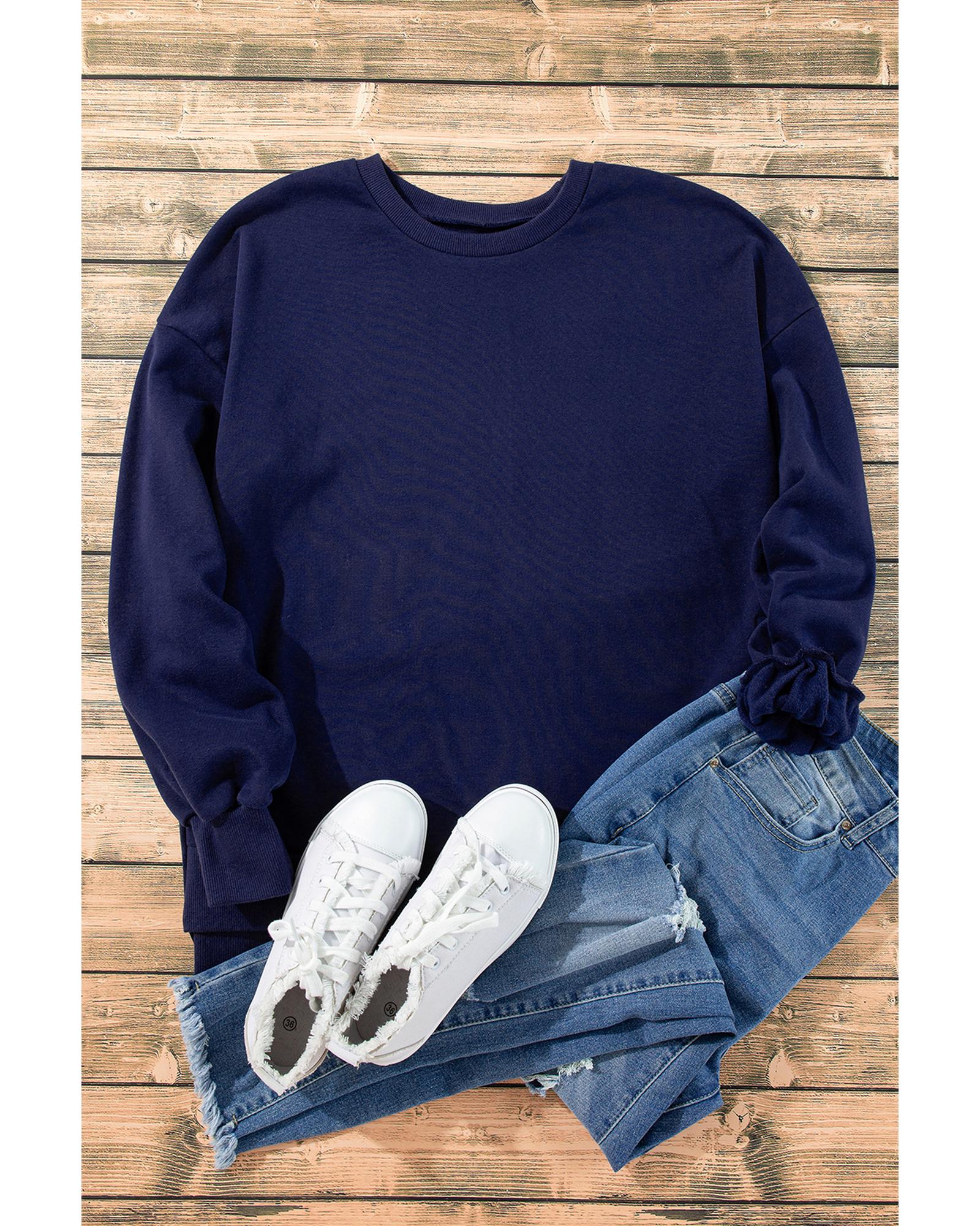 Navy Blue Solid Fleece Lined Drop Shoulder High Low Sweatshirt – 2XL