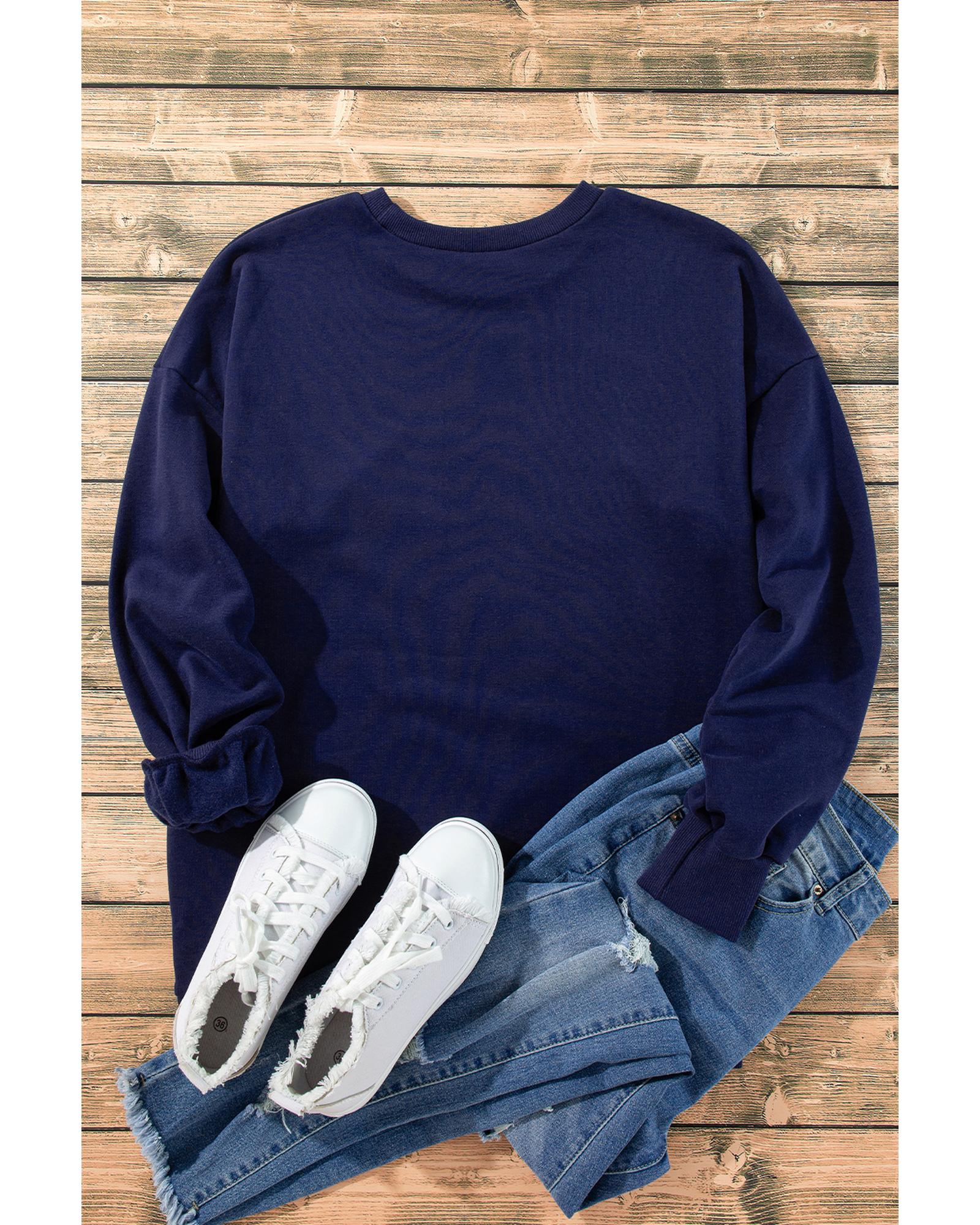 Navy Blue Solid Fleece Lined Drop Shoulder High Low Sweatshirt – XL