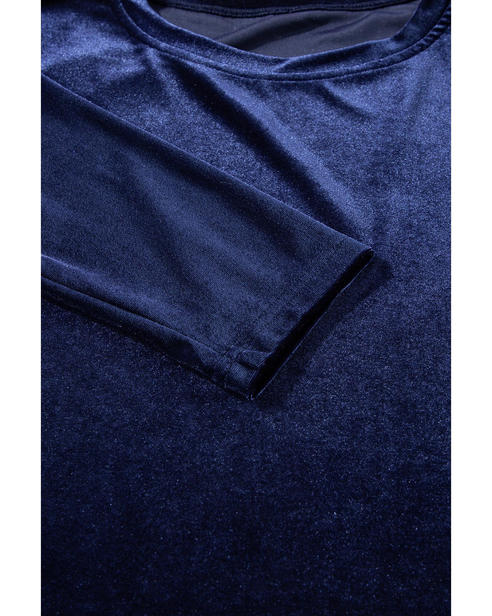 Navy Blue Solid Velvet Ruffled Two Piece Pants Set – XL