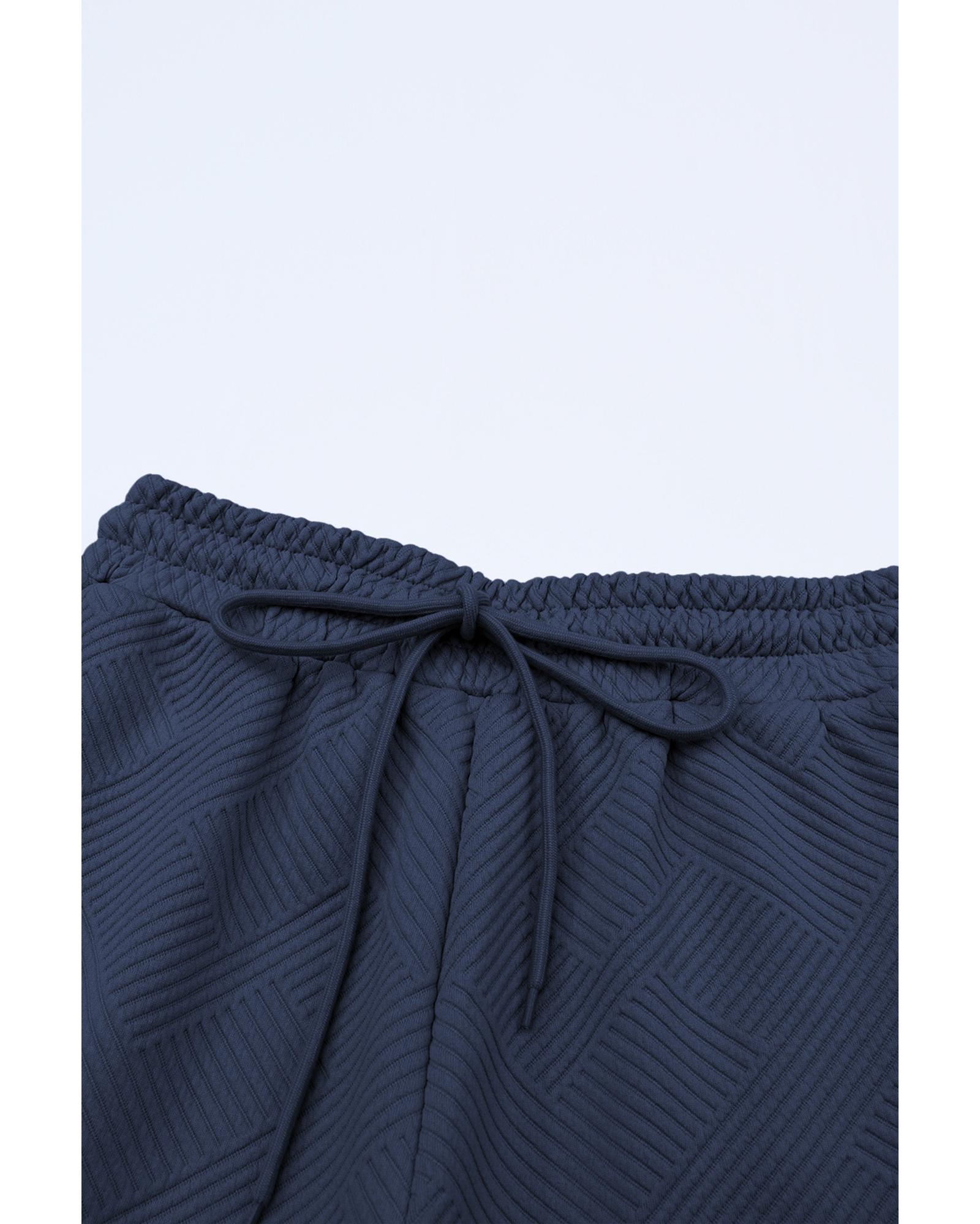 Navy Blue Textured Loose Fit T Shirt and Drawstring Pants Set – 2XL