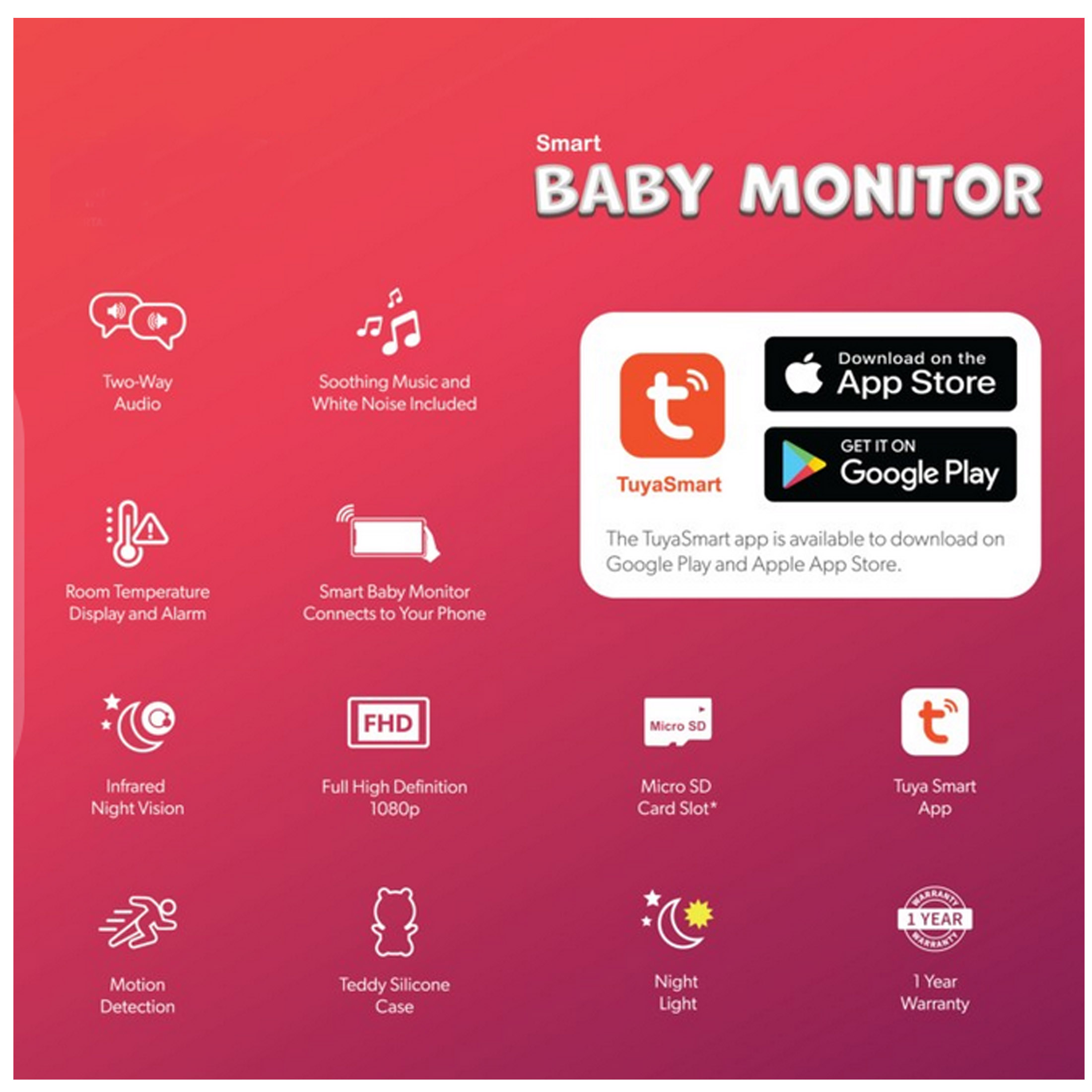 Connect to the Tuya smart app on your smart phone and monitor your child in Full HD resolution.