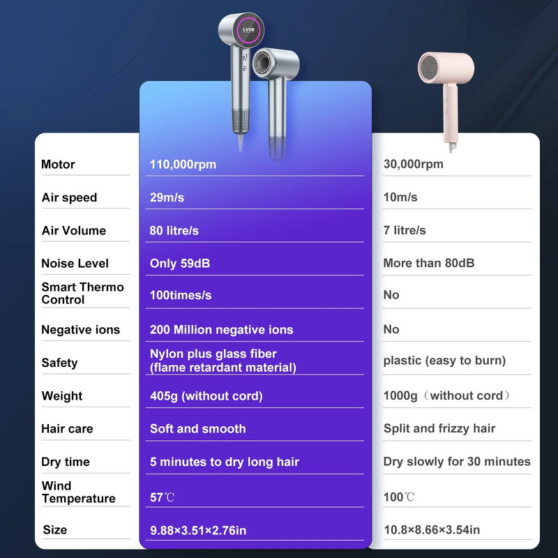 1. High-Speed Brushless Motor: 110,000 RPM for fast and efficient drying.