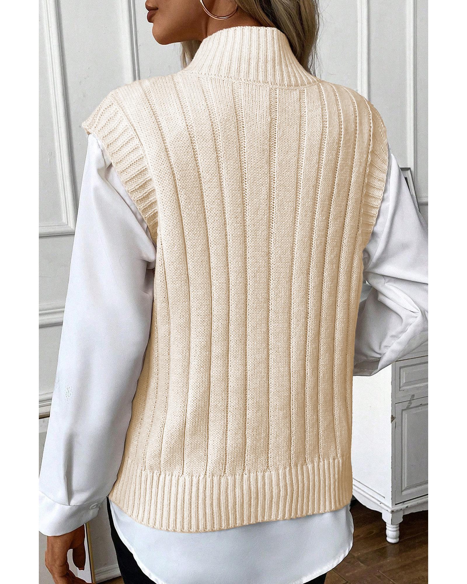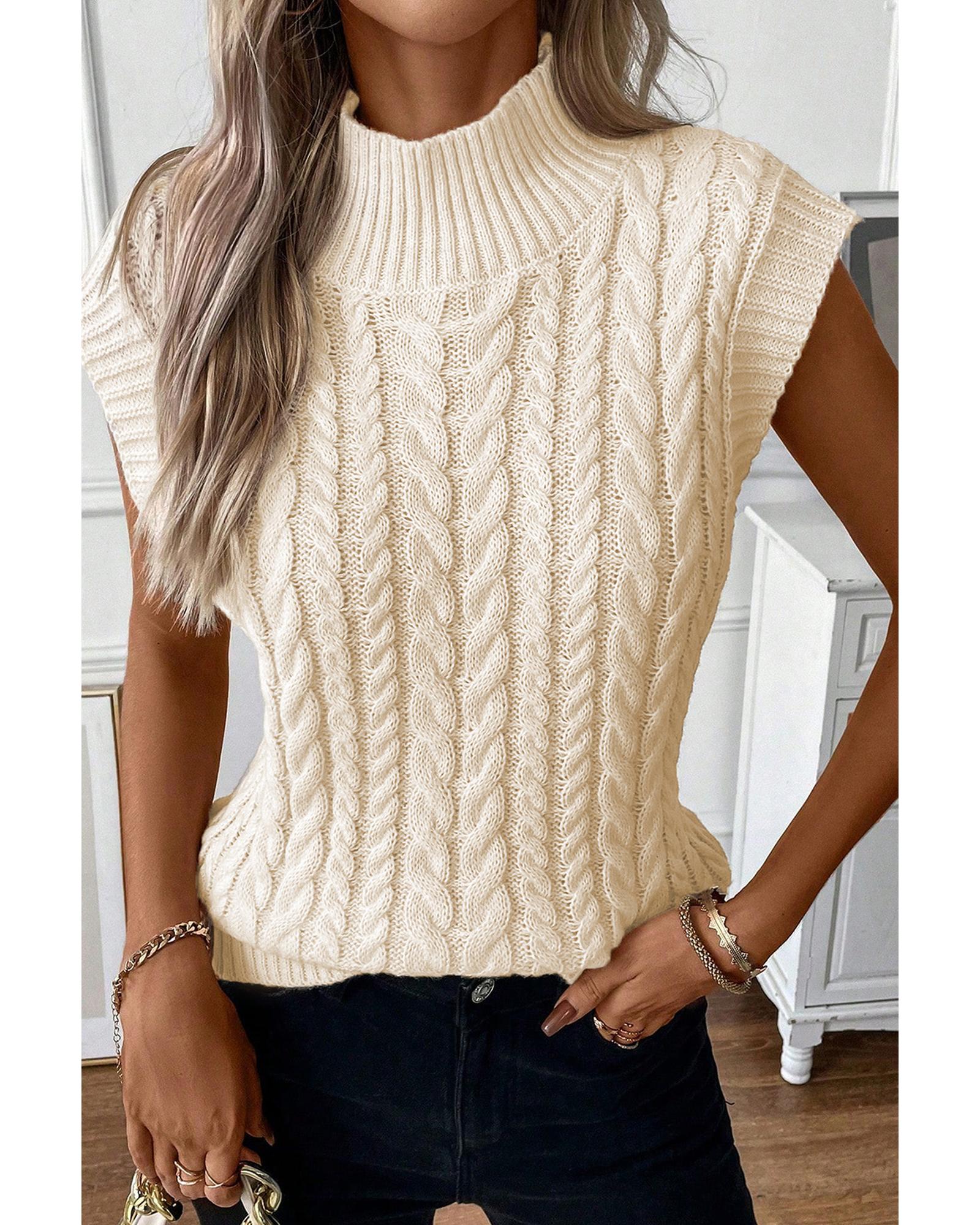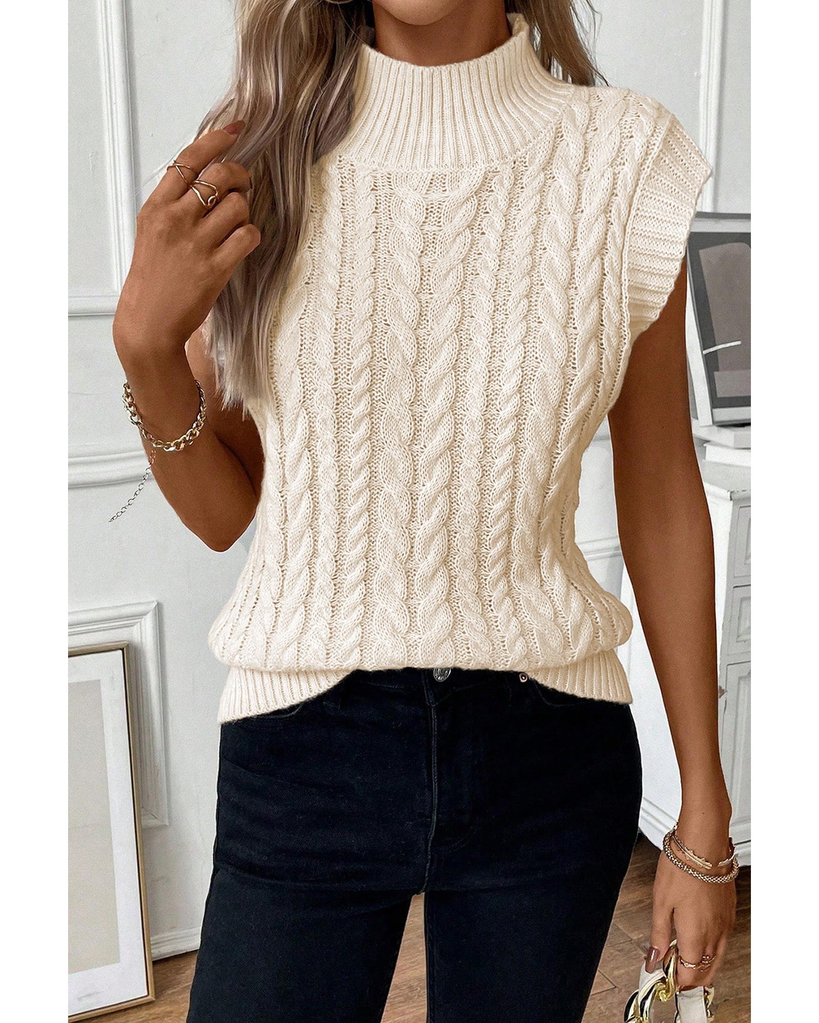 Oatmeal Cable Knit High Neck Sweater Vest – L