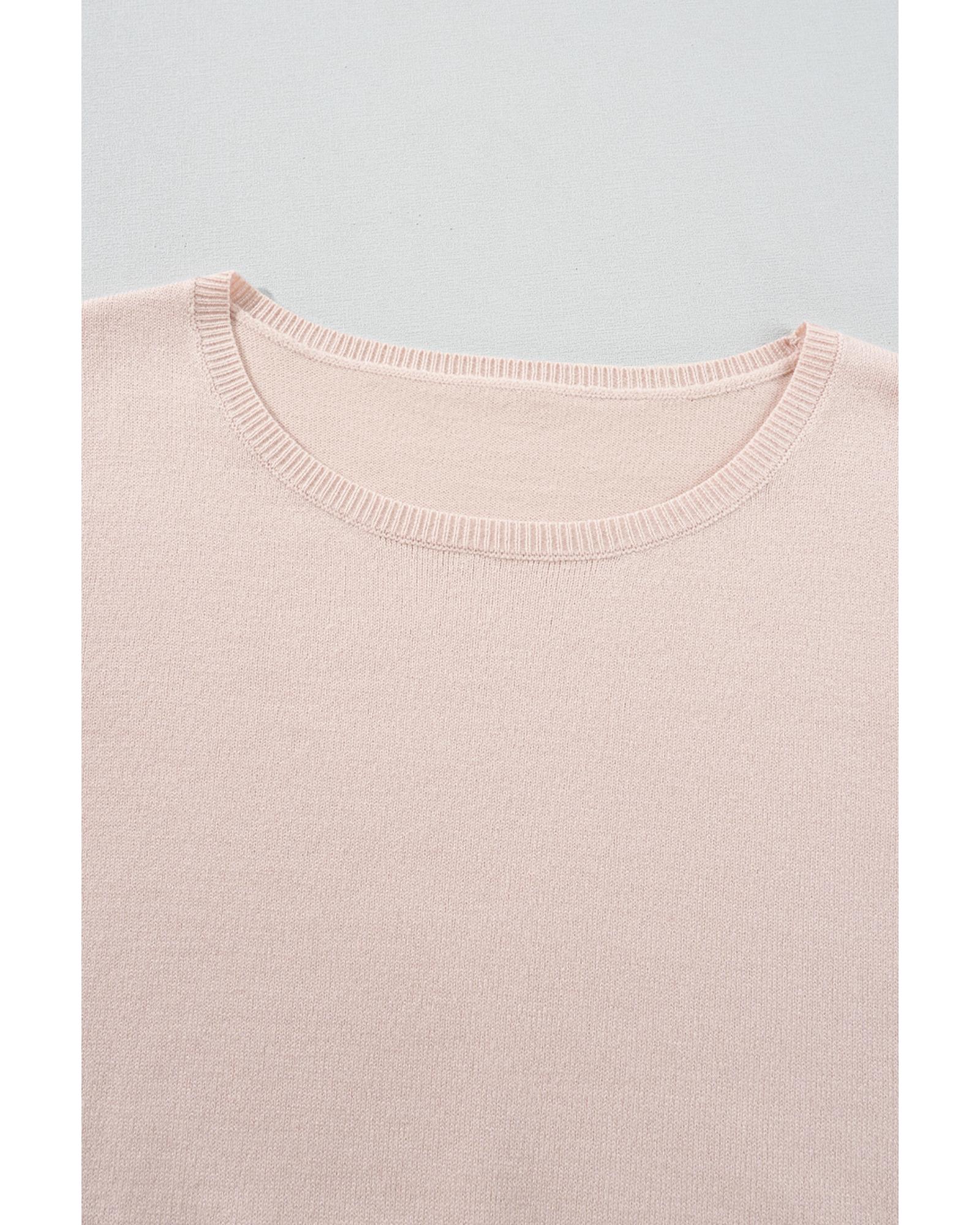 Smoke Gray Lattice Textured Knit Short Sleeve Sweater - M
