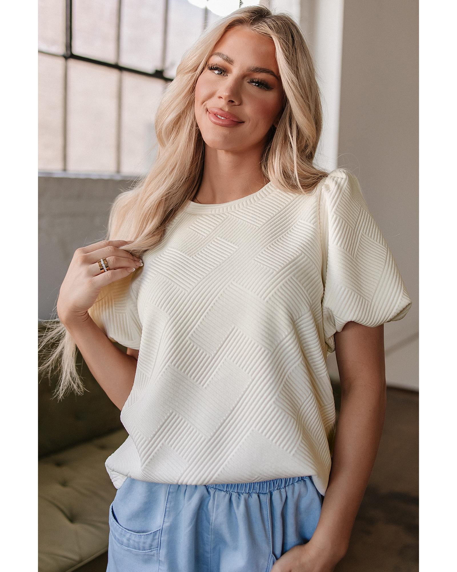 Oatmeal Textured Puff Sleeve T-shirt – XL