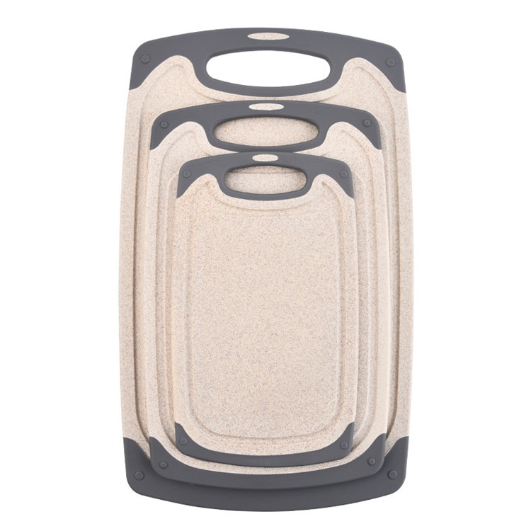 Off White 3-Piece Wheat Straw Cutting Board Set – Non-slip, Groove Design, Plastic Chopping Board for Kitchen Use
