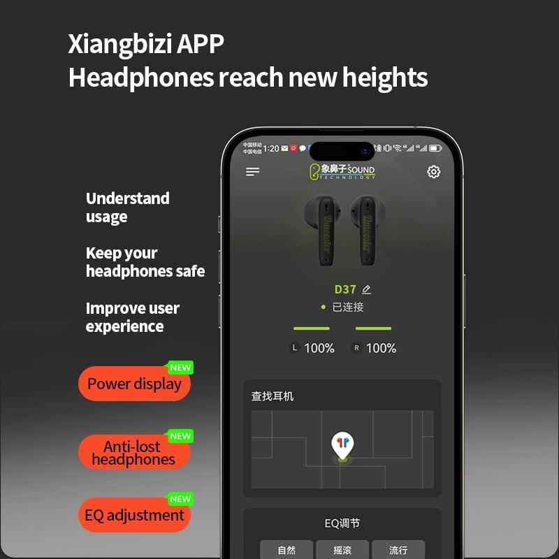 • Supports APP power display, mobile phone headset positioning, pairing name modification, and intelligent EQ adjustment.