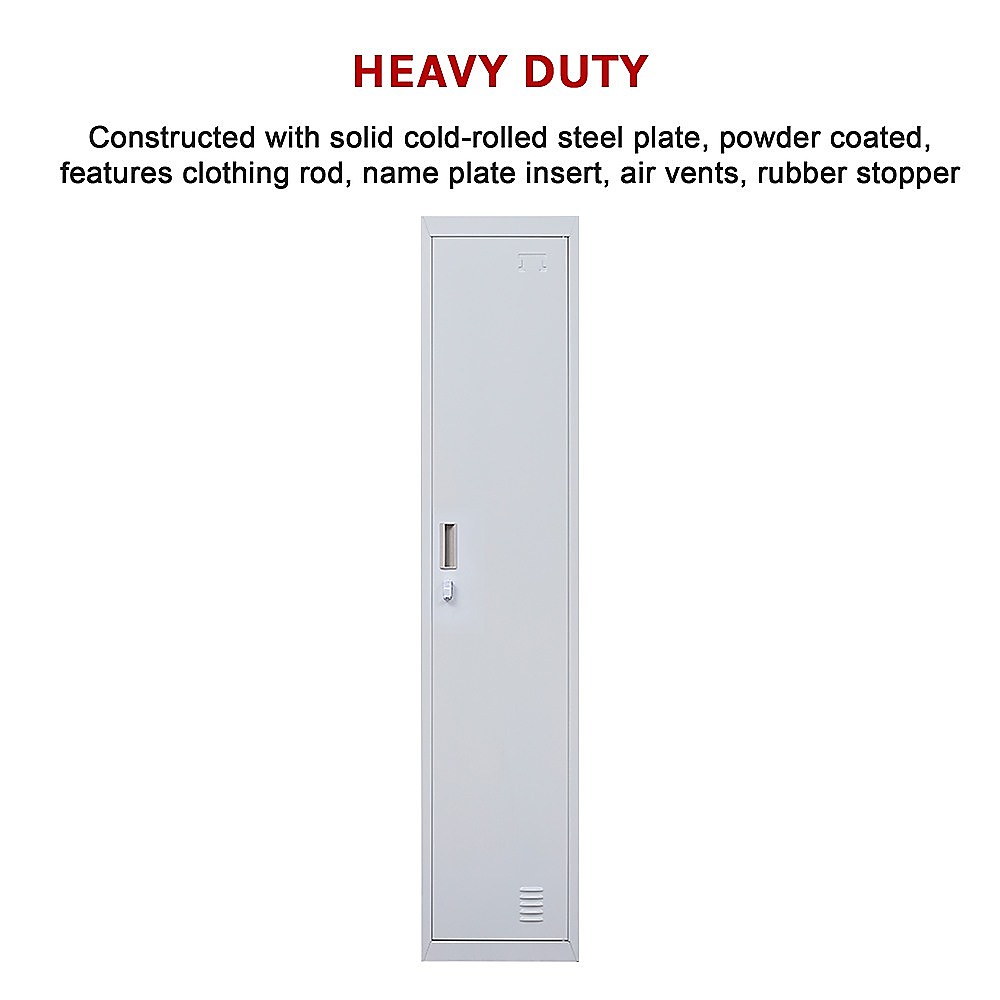 The locker is constructed with solid cold-rolled steel plate for sturdiness and durability. The steel is also powder-coated to resist corrosion. The locker measures 180 x 38 x 45cm, and the maximum recommended weight capacity is approximately 30kg. In addition there are spaces designated for labels to help identify lockers when needed.