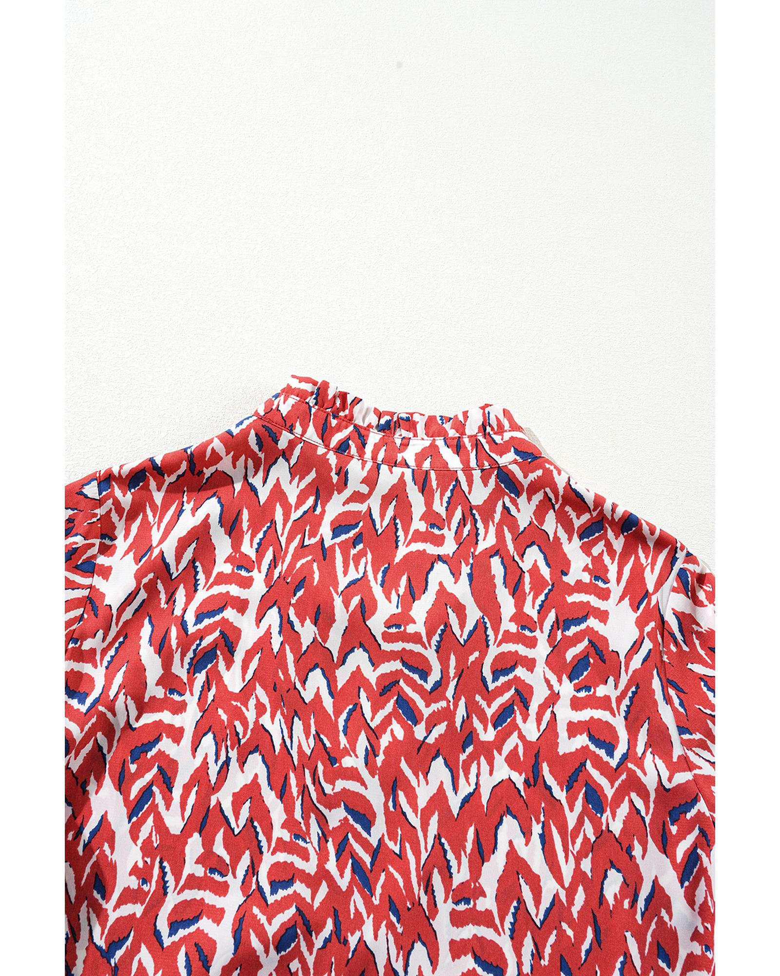 Rose Abstract Print Short Puff Sleeve Tiered Maxi Dress - M