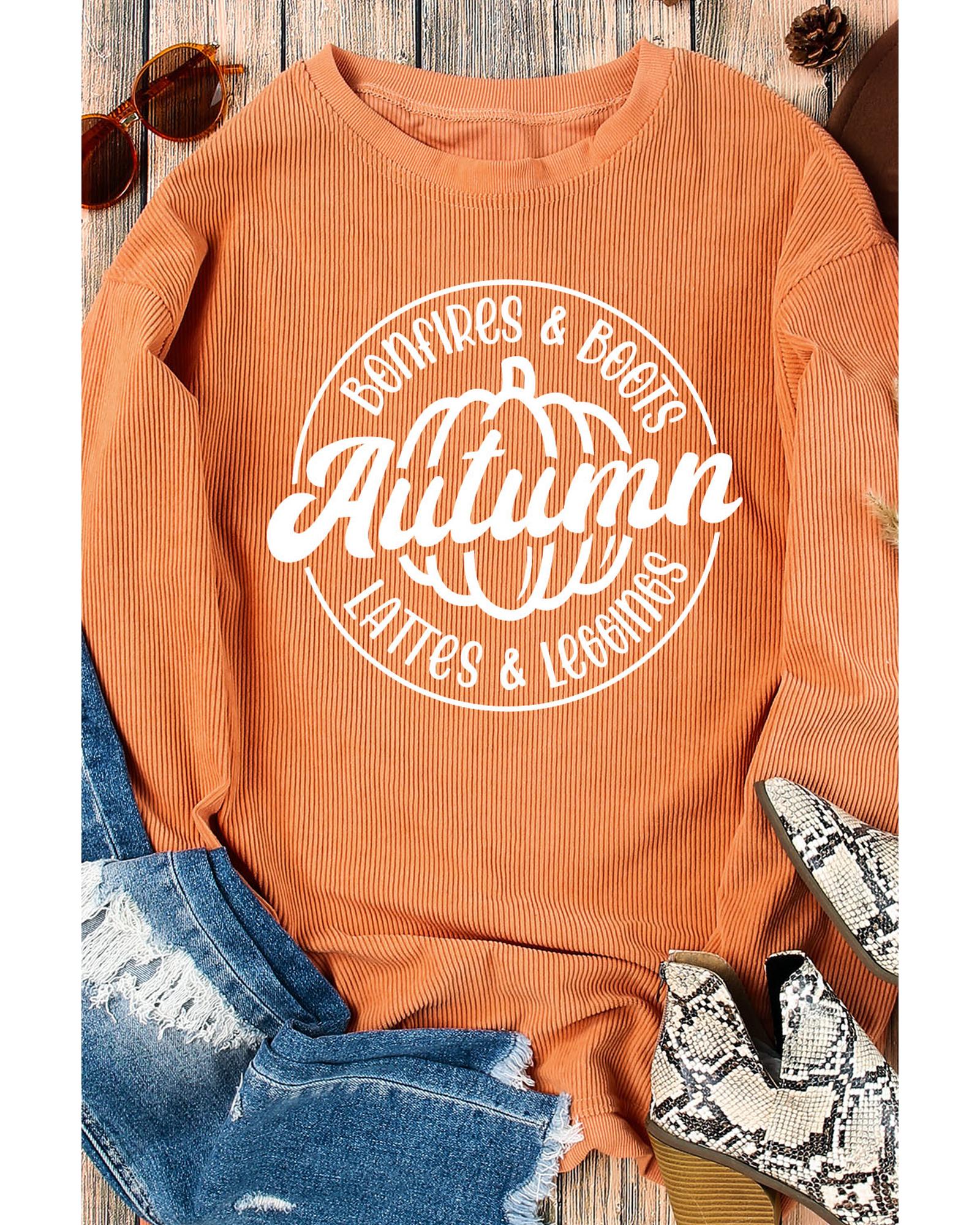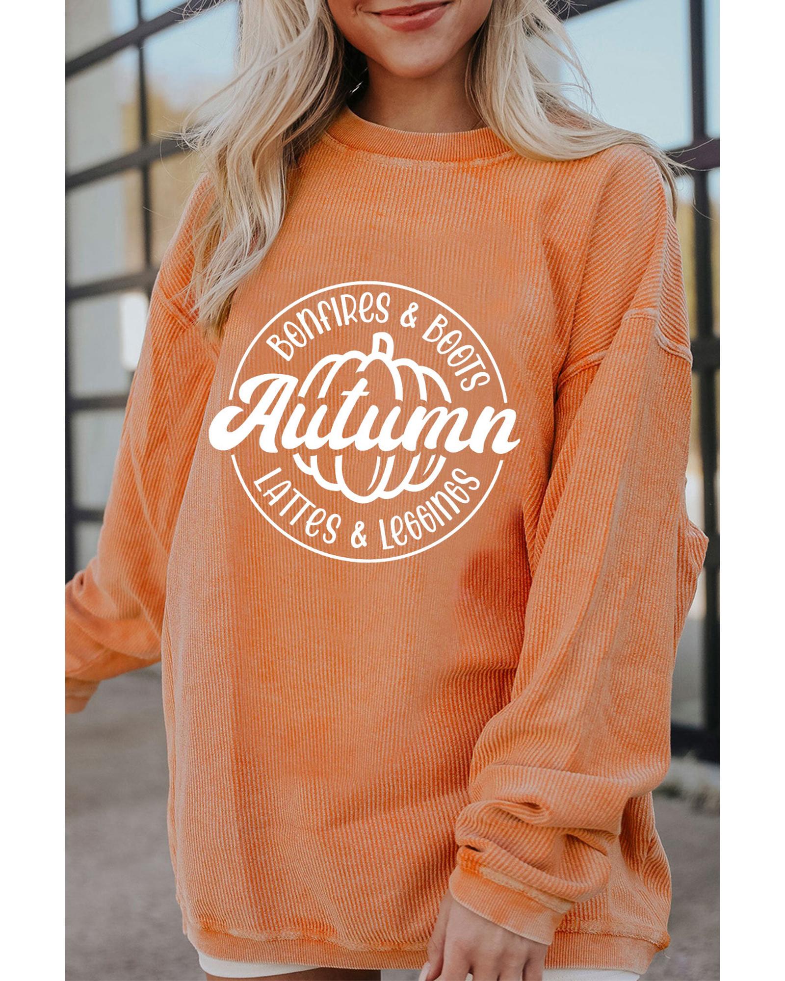 Orange Autumn Pumpkin Graphic Print Corded Oversized Sweatshirt – XL
