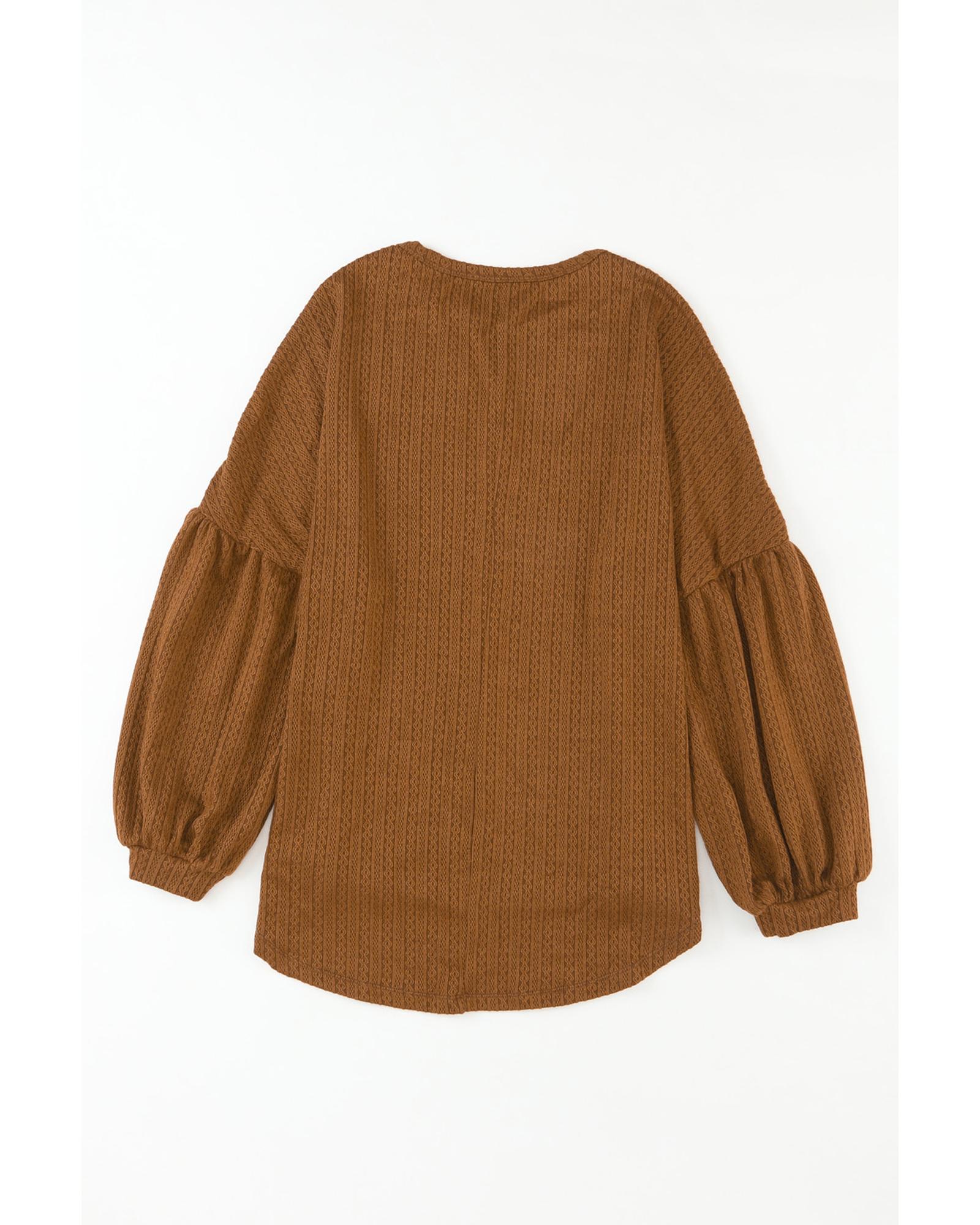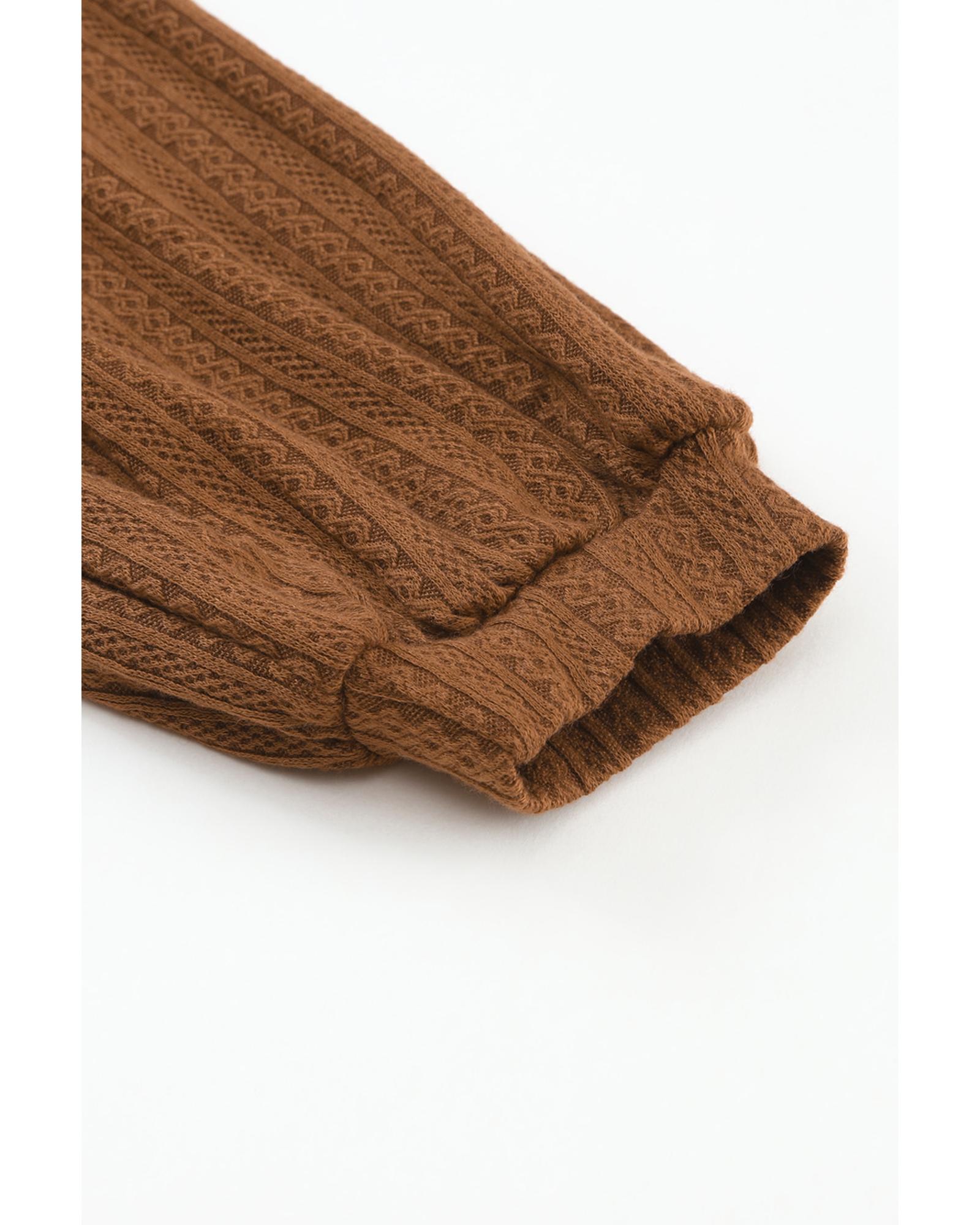 Orange Faux Knit Jacquard Puffy Long Sleeve Top – L