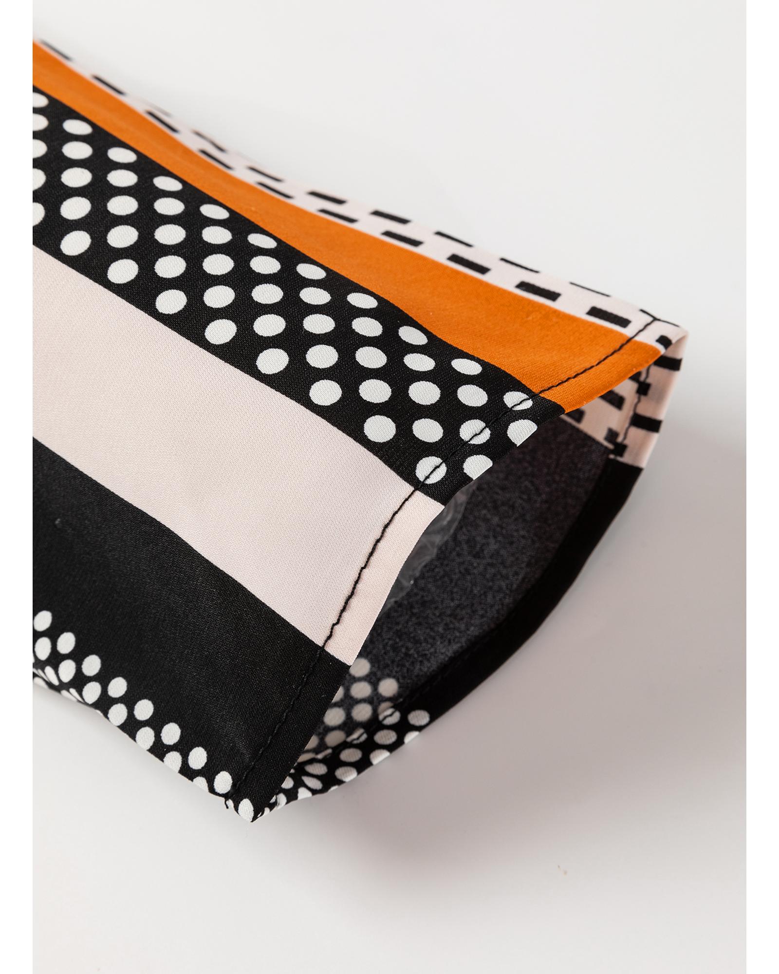 Orange Geo Print Colorblock Notched V Neck Blouse – L