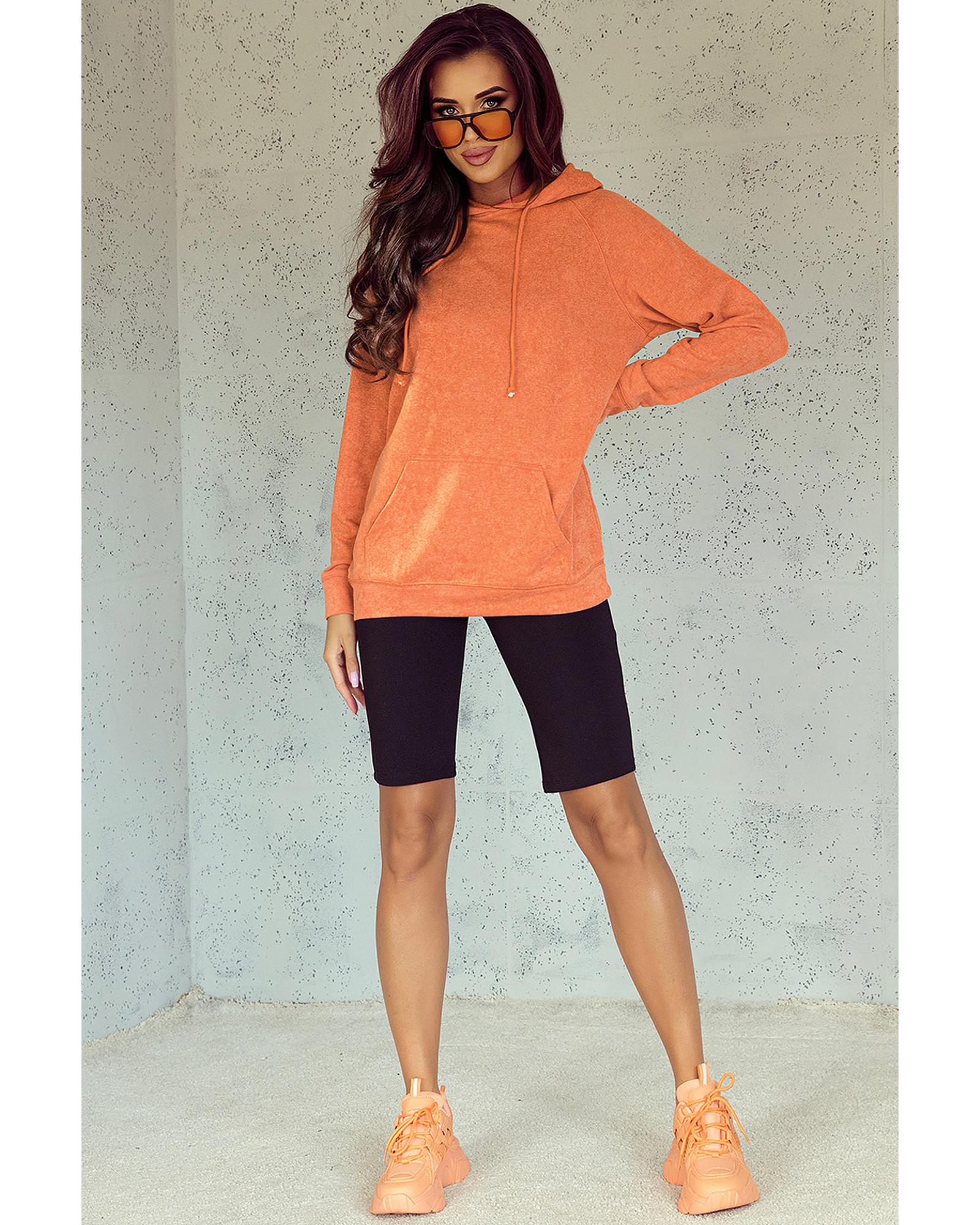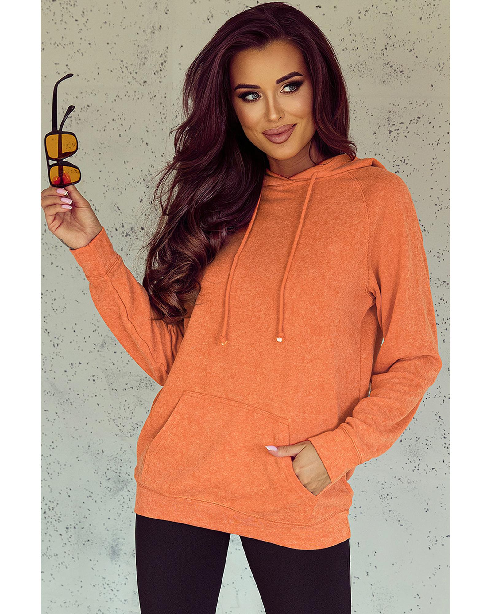 Orange Mineral Wash Kangaroo Pocket Drawstring Pullover Hoodie – M