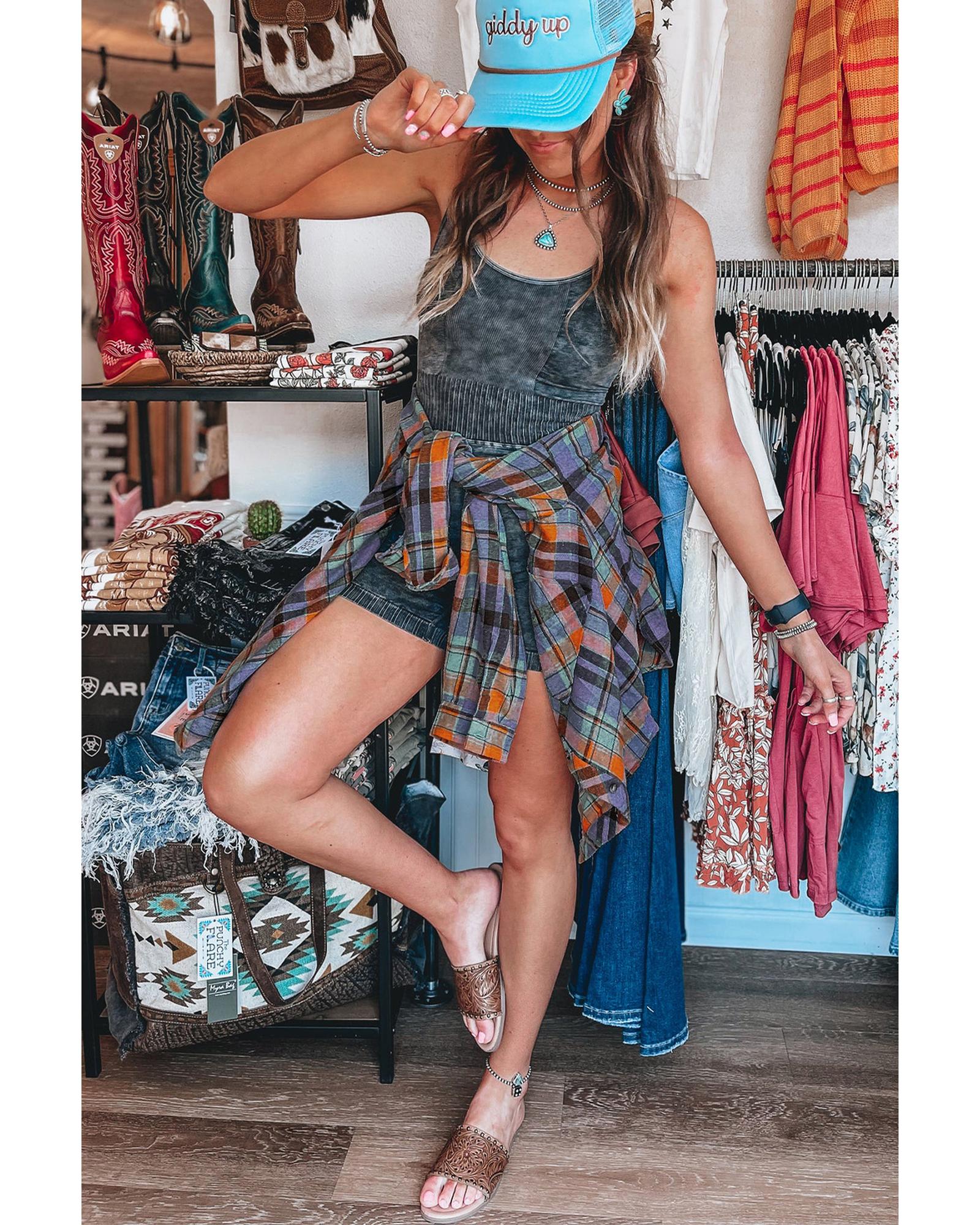 Orange Plaid Print Loose Vintage Shirt – 2XL