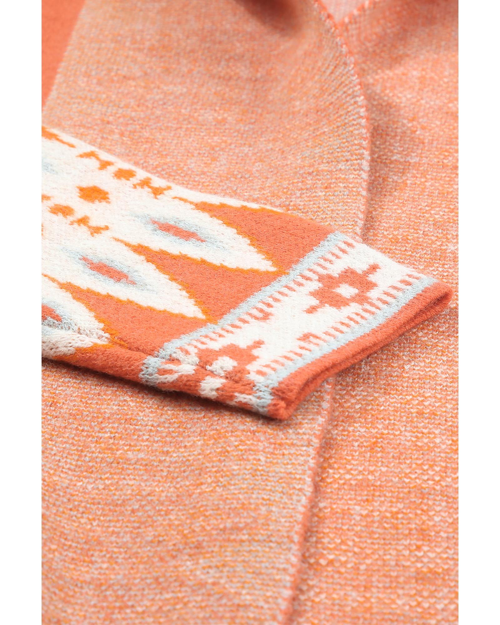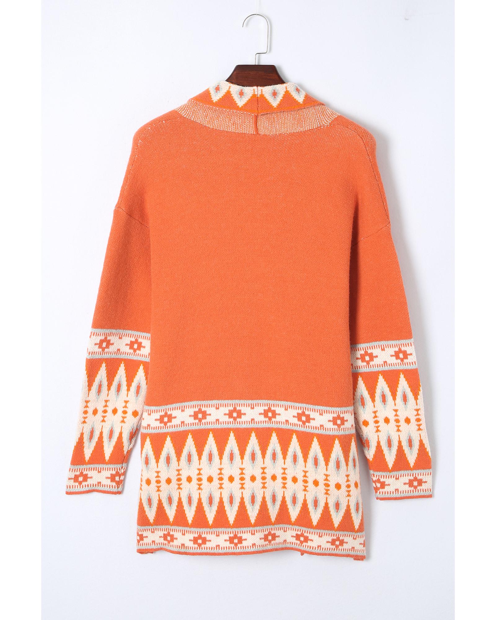 • Orange Printed Aztec Print Open Front Knitted Cardigan