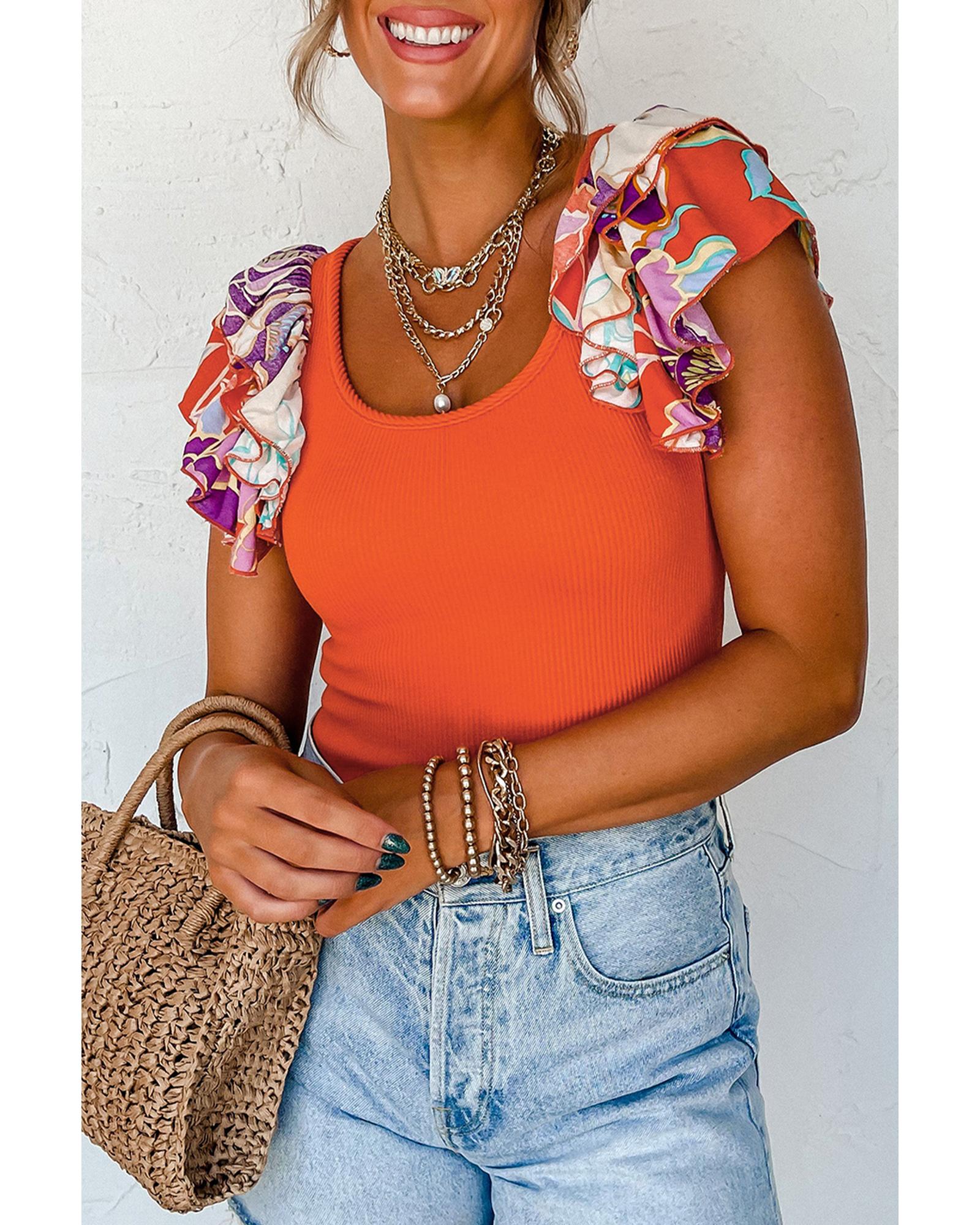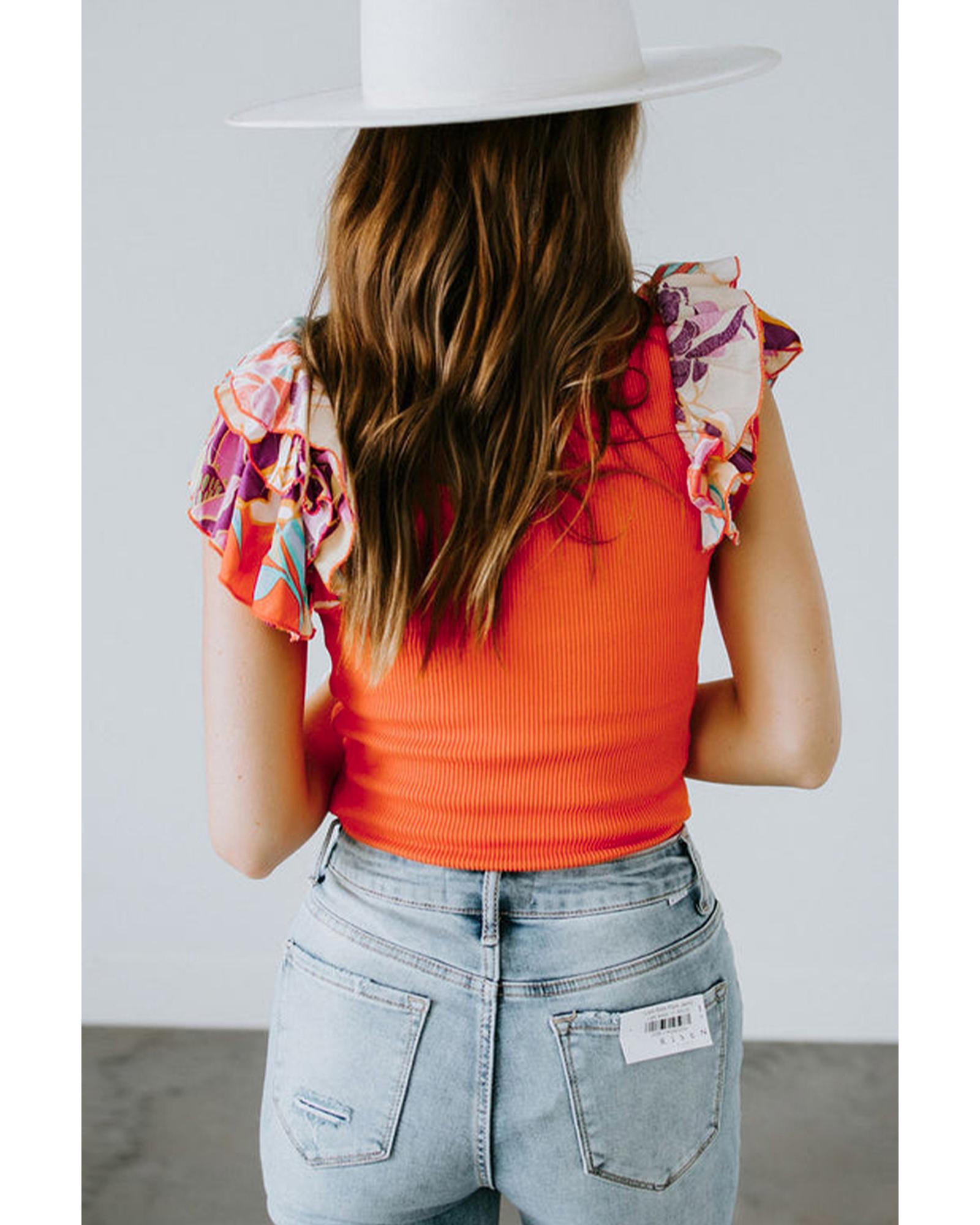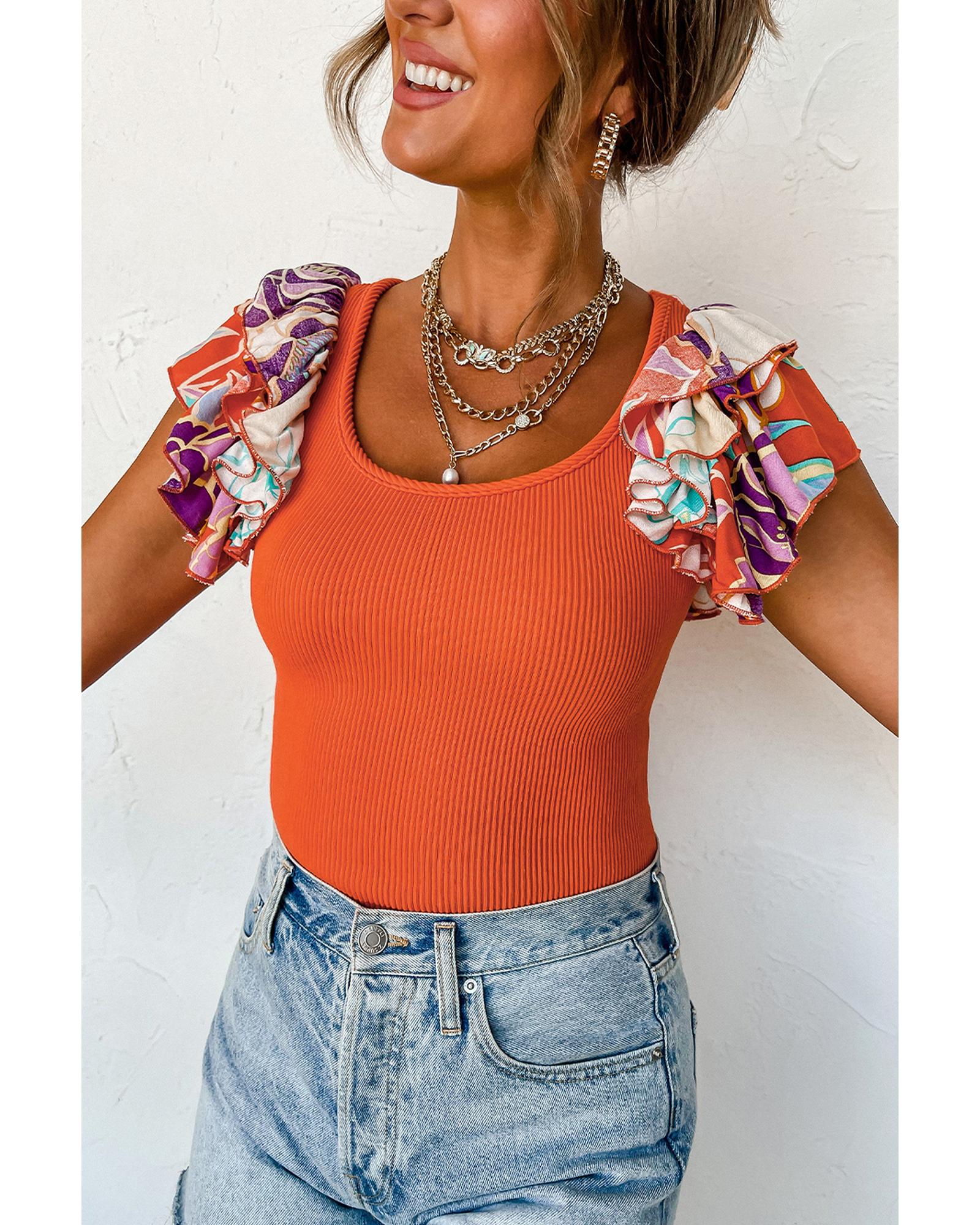 Orange Ribbed Knit Tiered Ruffled Sleeve Bodysuit – M