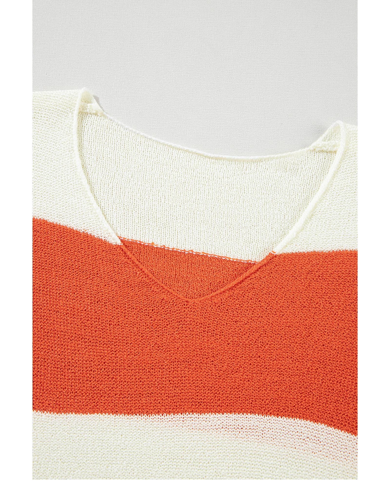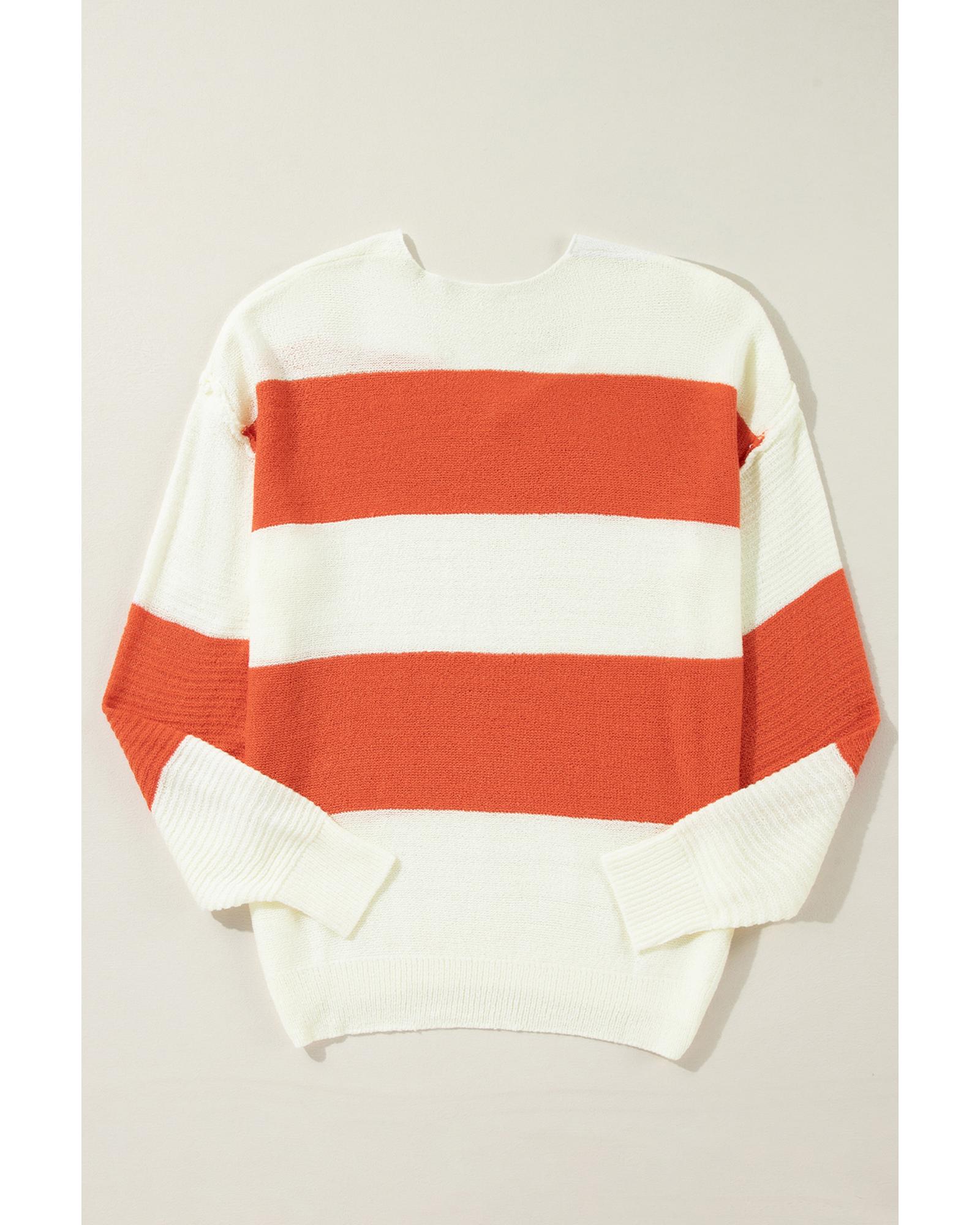 Orange Stripe Loose Color Block Drop Shoulder Bubble Sleeve Sweater – S