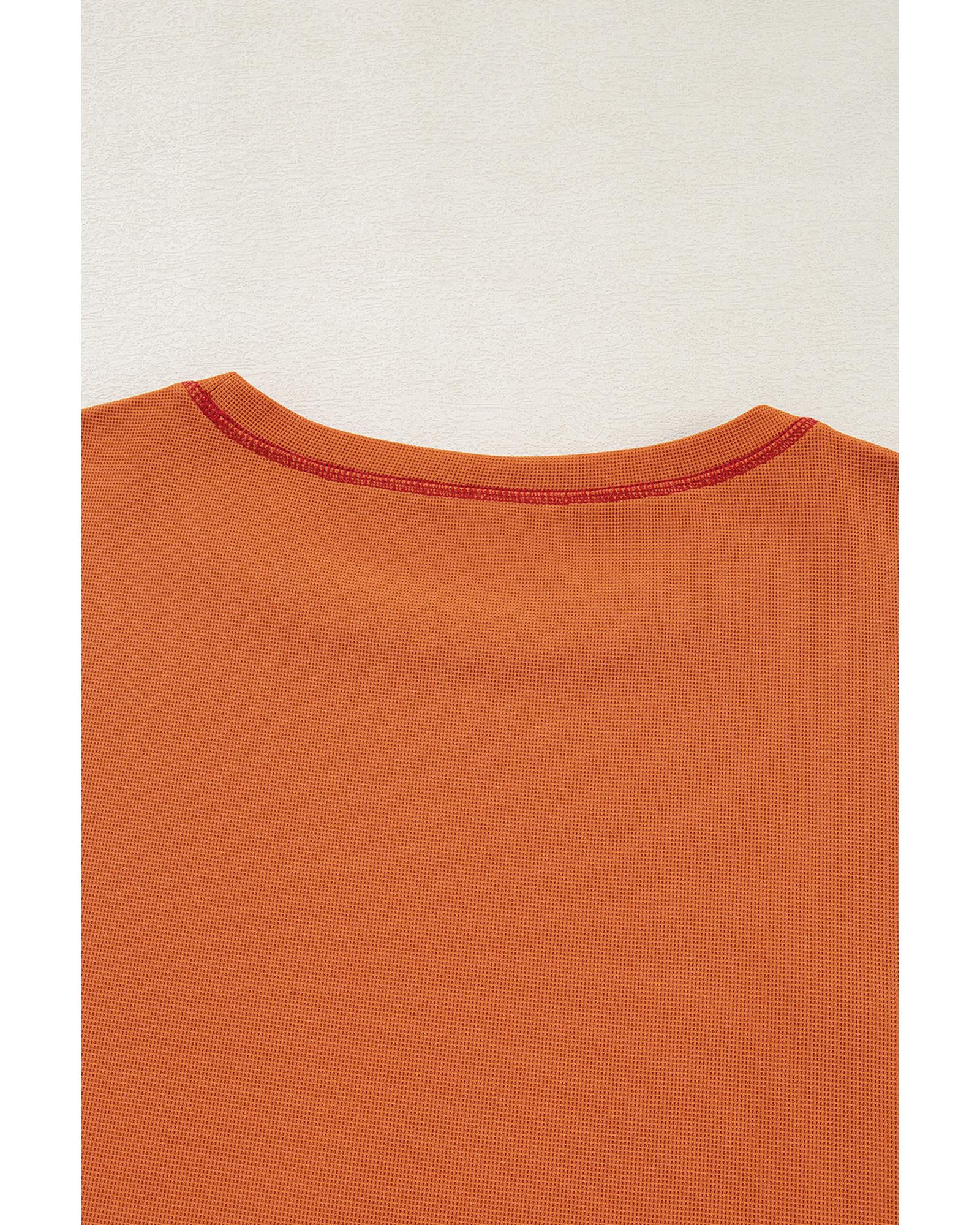 Orange Textured Knit Color Block Patchwork Chest Pocket Plus Size Top – 1X